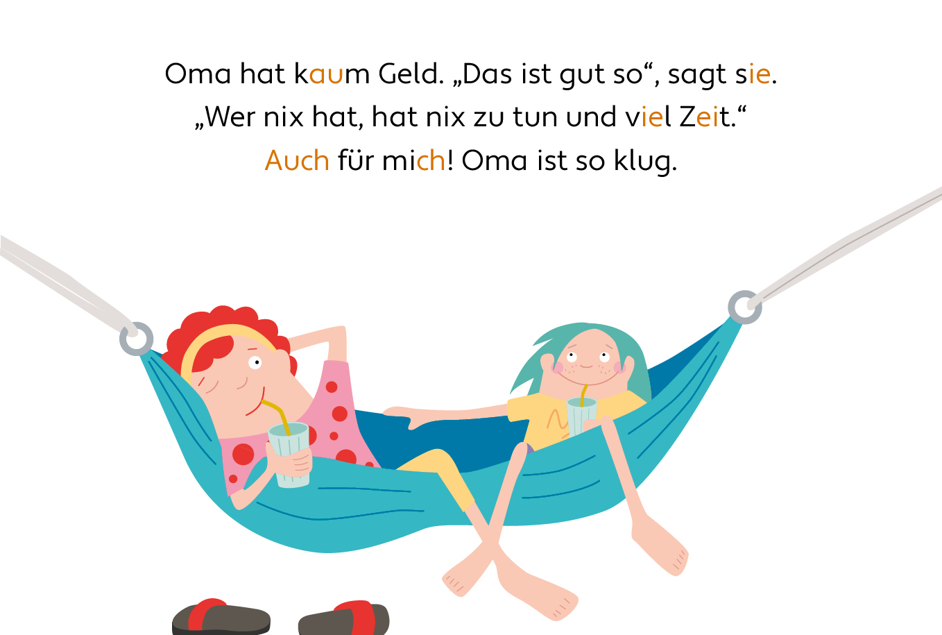 Ich mag Oma. Oma mag es, frei zu sein. Sie tut, was sie will oder was ich will. Ich bin gern bei Oma. Oma lebt auf dem Dorf. Hier hält man noch Kuh, Esel, Gans und Huhn. Oma hat Lola, die legt pro Tag ein Ei.