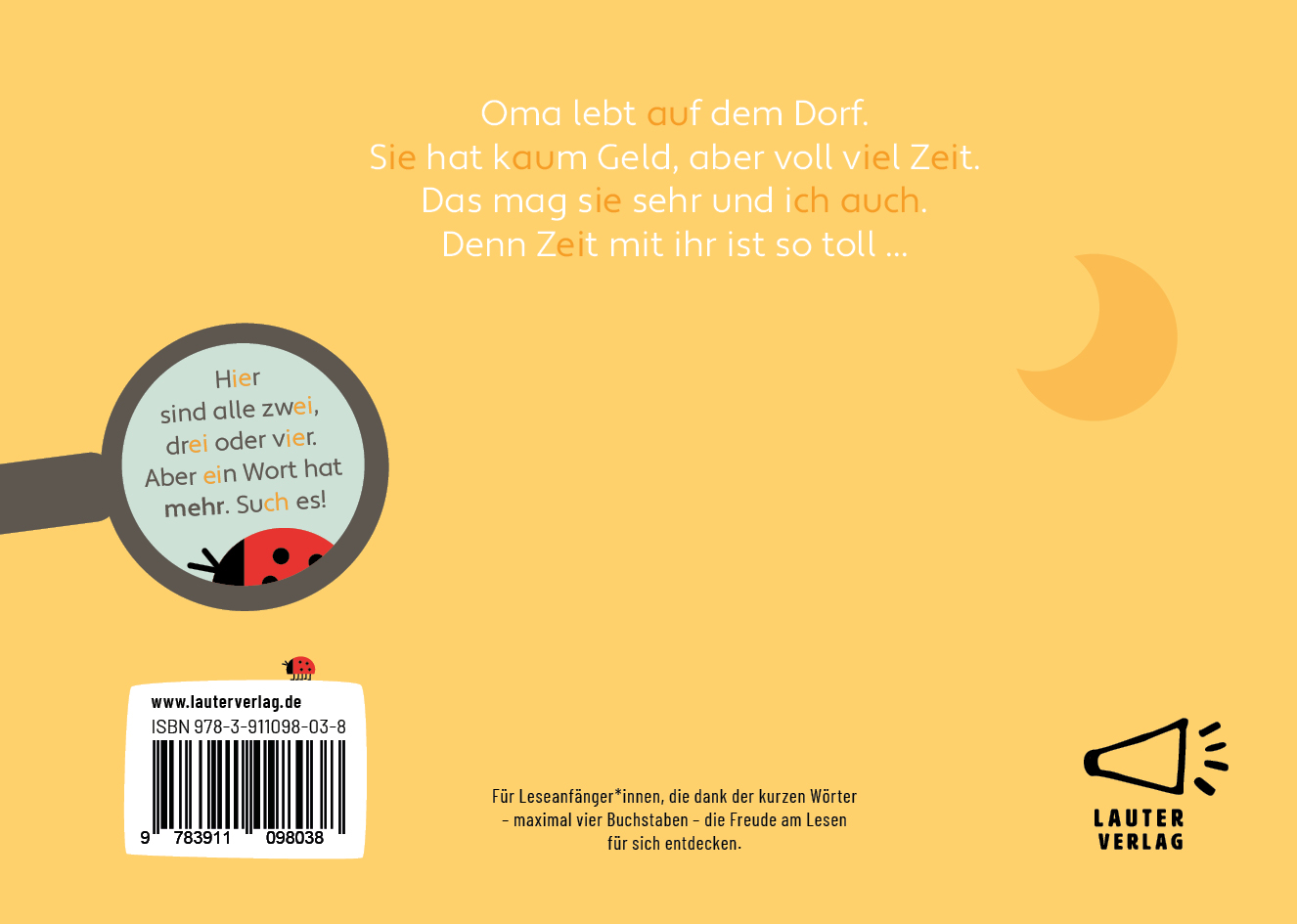 | Schlagworte | 4 Buchstaben • Buchstaben • Erstlesebücher • kurze Worte • markiert • Vorlesen |