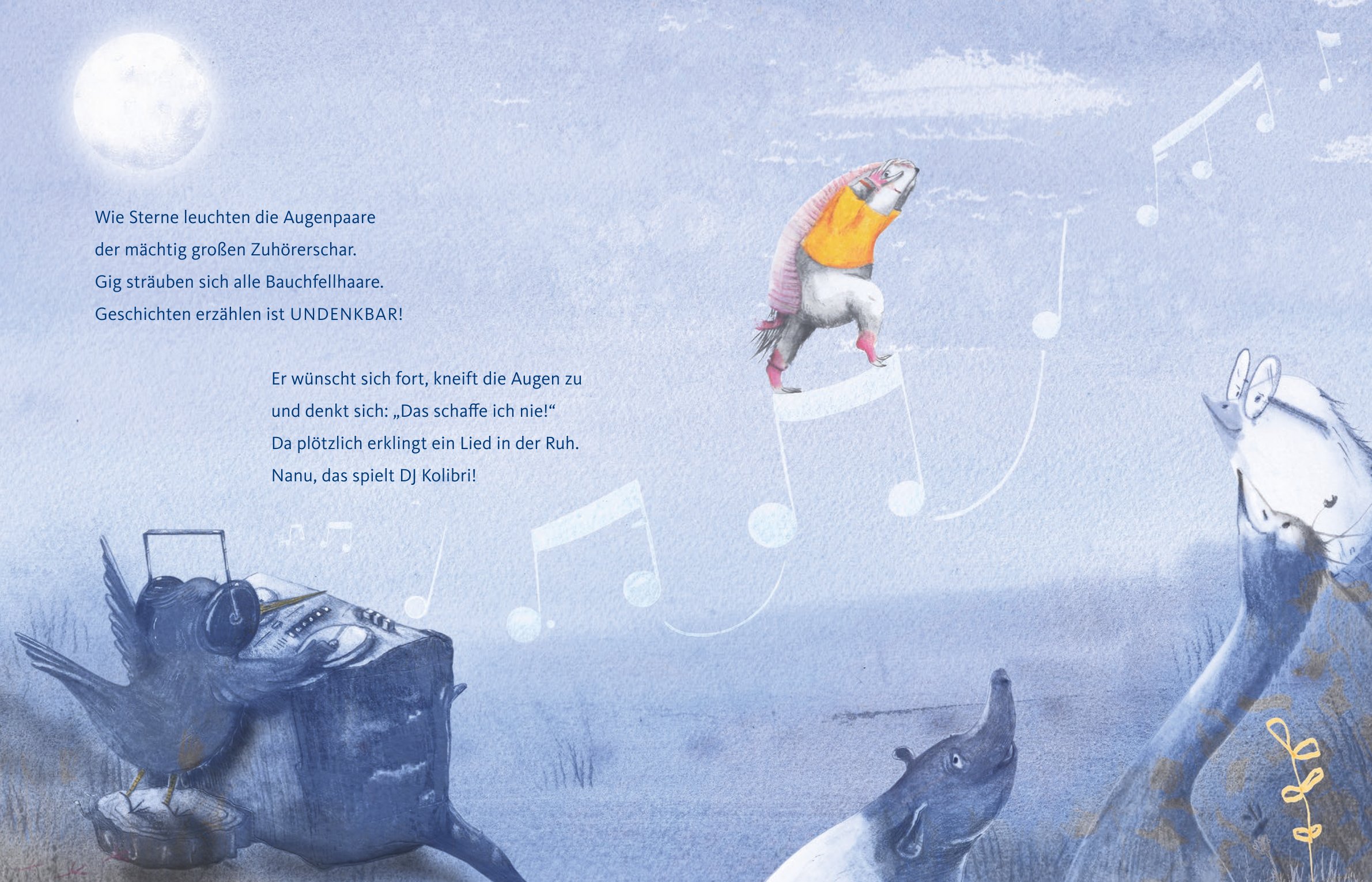 Gig der kleine Gürtelmull entdeckt durch Zufall, wie er am besten Geschichten erzählen kann. Die wunderbare Reimgeschichte von Nicole Pirker unterstützt Kinder ab 4 Jahren auf der Suche nach ihren persönlichen Stärken. Die detaillierten Illustrationen von Clara Frühwirt laden zu Entdeckungen ein und machen die Tiergeschichte greifbar. Geschichten tanzen mit Gig: Ein Kinderbuch über die vielen Dinge, die jeden von uns zu etwas Einzigartigem machen!