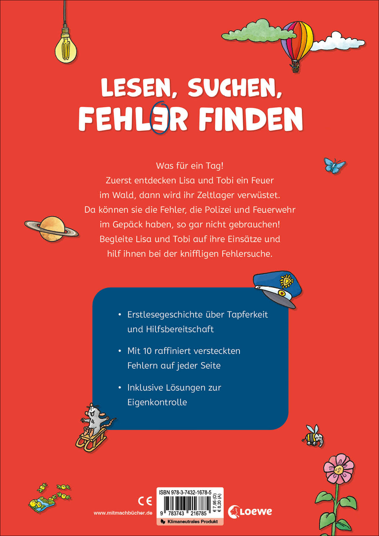 Was für ein Tag! Zuerst entdecken Lisa und Tobi ein Feuer, dann wird ihr Zeltlager verwüstet. Da können sie die Fehler, die Polizei und Feuerwehr im Gepäck haben, so gar nicht gebrauchen! Begleite Lisa und Tobi auf ihre Einsätze und hilf ihnen bei der kniffligen Fehlersuche.