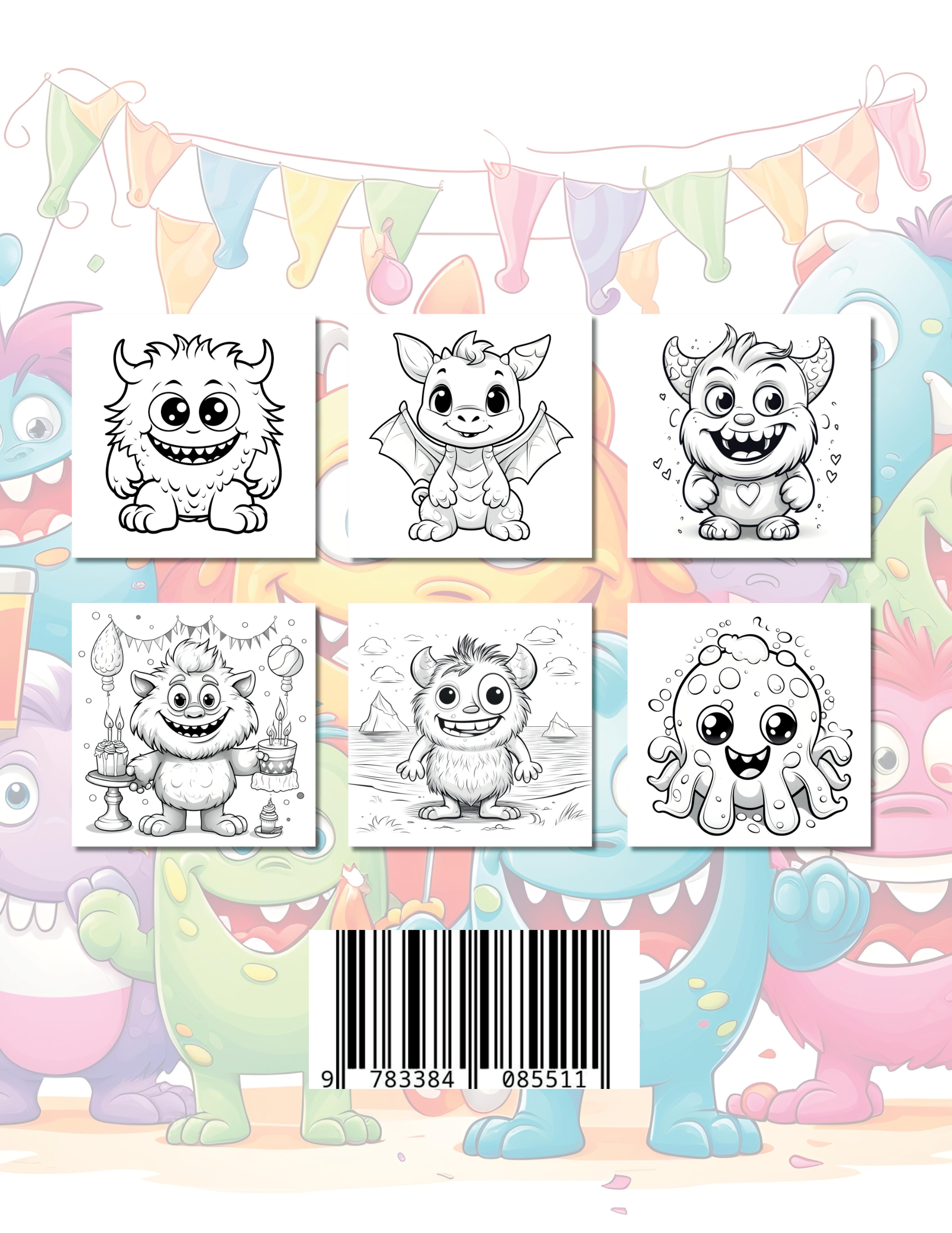 Supersüßes Monstermalbuch mit wunderschönen Vorlagen im Cartoon Stil. Malbuch Monster. Niedliche Monster- Malbuch. Ab 4 Jahren.