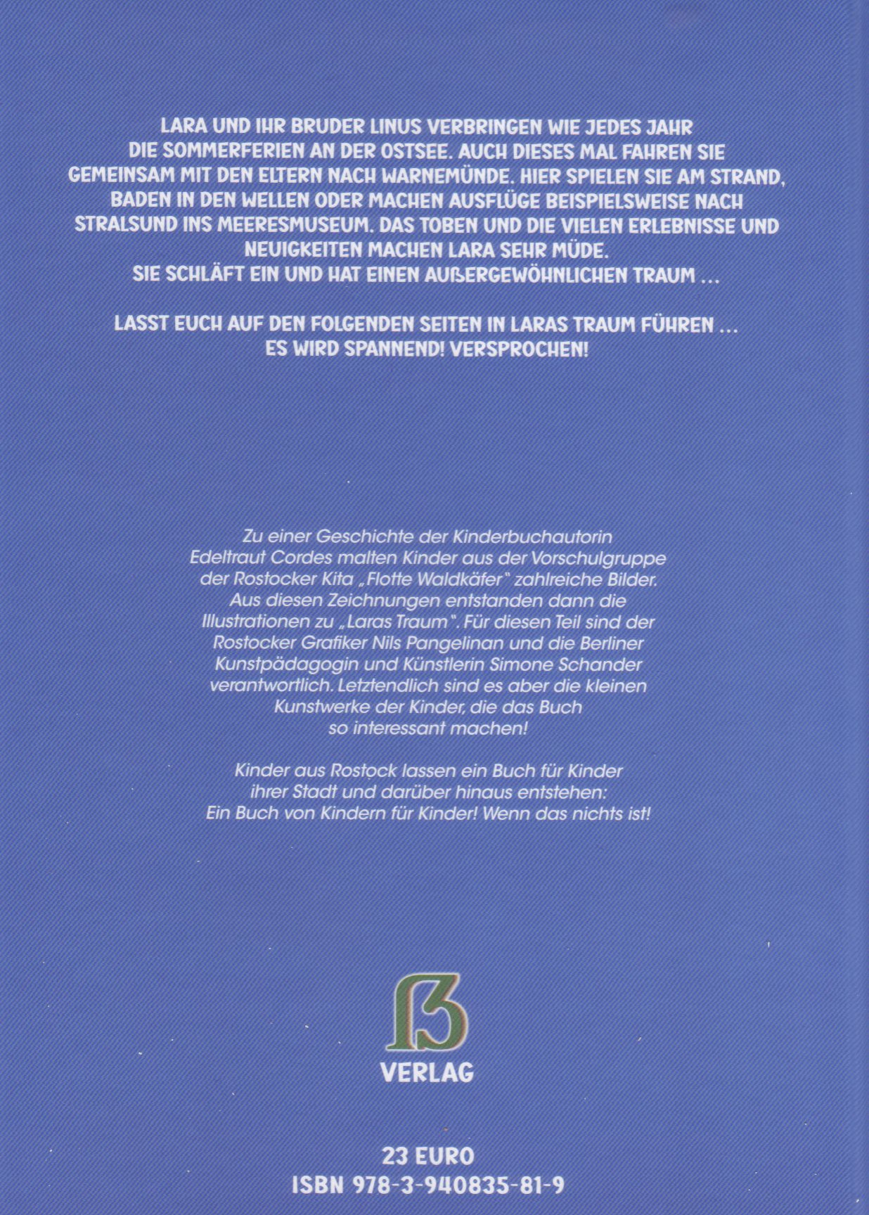 Nach einem anstrengenden Urlaubstag an der Ostseeküste schläft Lara am Strand von Warnemünde ein. Sie hat einen spannenden Traum, in dem Schildkröten, Seepferdchen und andere Meerestiere eine Rolle spielen.