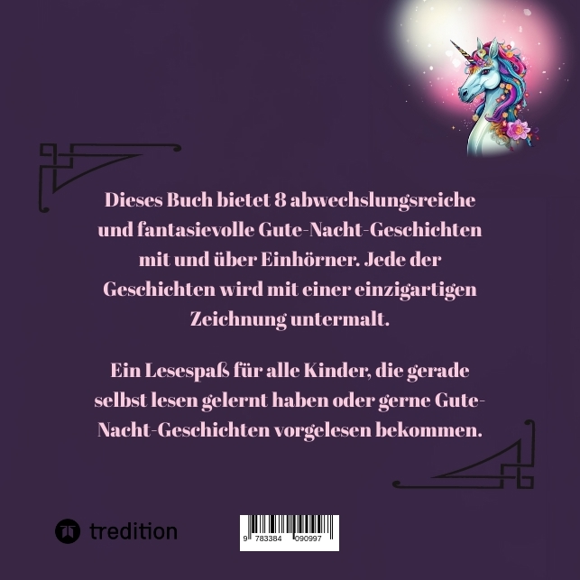 Dieses Buch bietet 8 abwechslungsreiche und fantasievolle Gute-Nacht-Geschichten über und mit Einhörnern. Jede Geschichte ist mit einer ansprechenden eigenen Illustration bebildert.