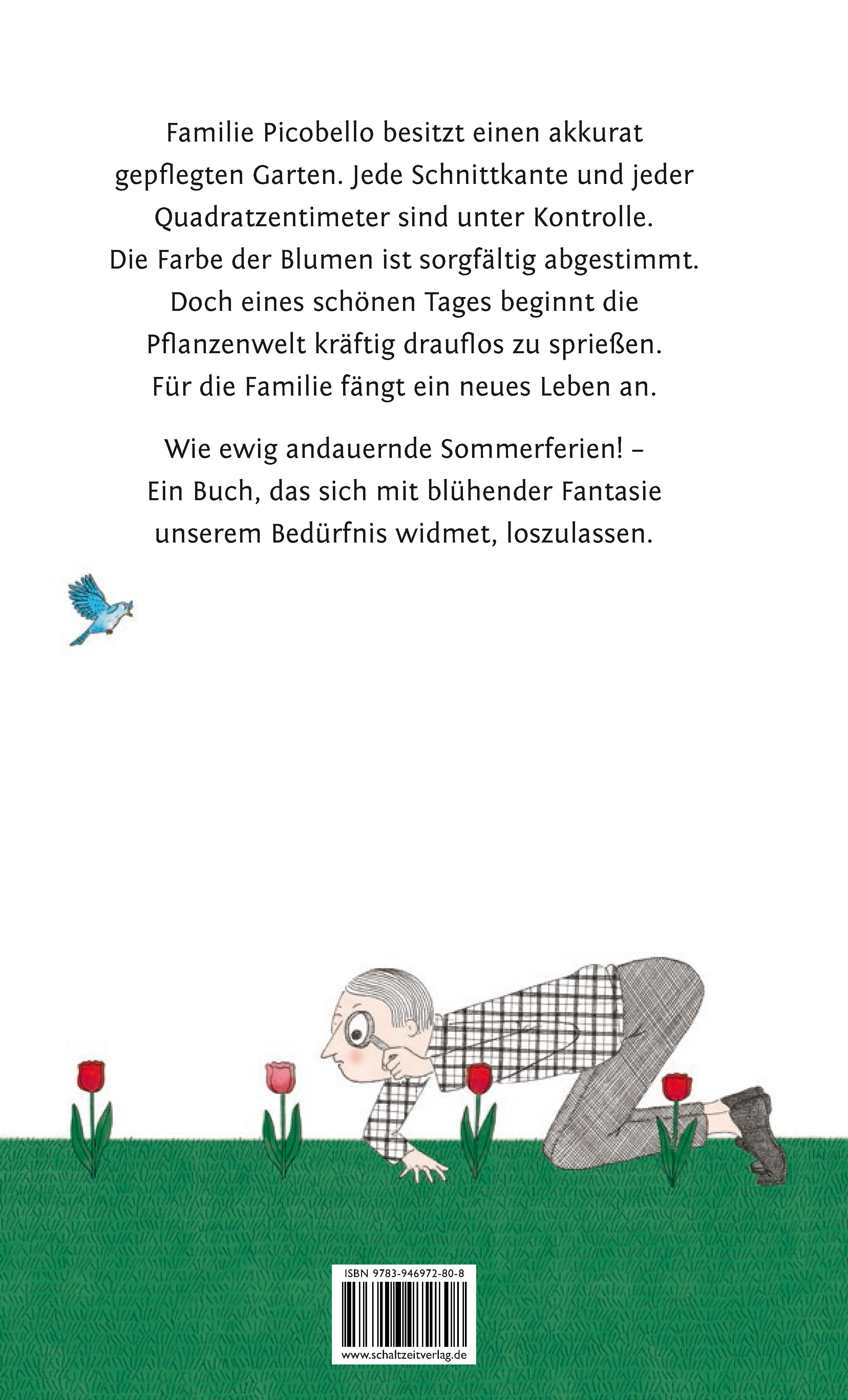 Wie ewig andauernde Sommerferien - Ein Buch, das sich mit blühender Fantasie unserem Bedürfnis widmet, sich gehenzulassen. Tritt man durch das Tor zu diesem Anwesen, begibt man sich in einen akkurat gepflegten Garten. Jeder Quadratzentimeter ist unter Kontrolle. Die Schnittkante der Büsche wird aufs penibelste im Zaum gehalten, die Farbeder Blumen ist sorgfältig abgestimmt. Doch eines schönen Tages beginnt die Pflanzenwelt zu rebellieren. Zuerst schlingt sie sich um die Hauswände, dann wuchert es überall wild drauflos. Für die dort lebende Familie beginnt ein neues Leben, in dem es gilt loszulassen und sich Entdeckungen und Überraschungen hinzugeben.