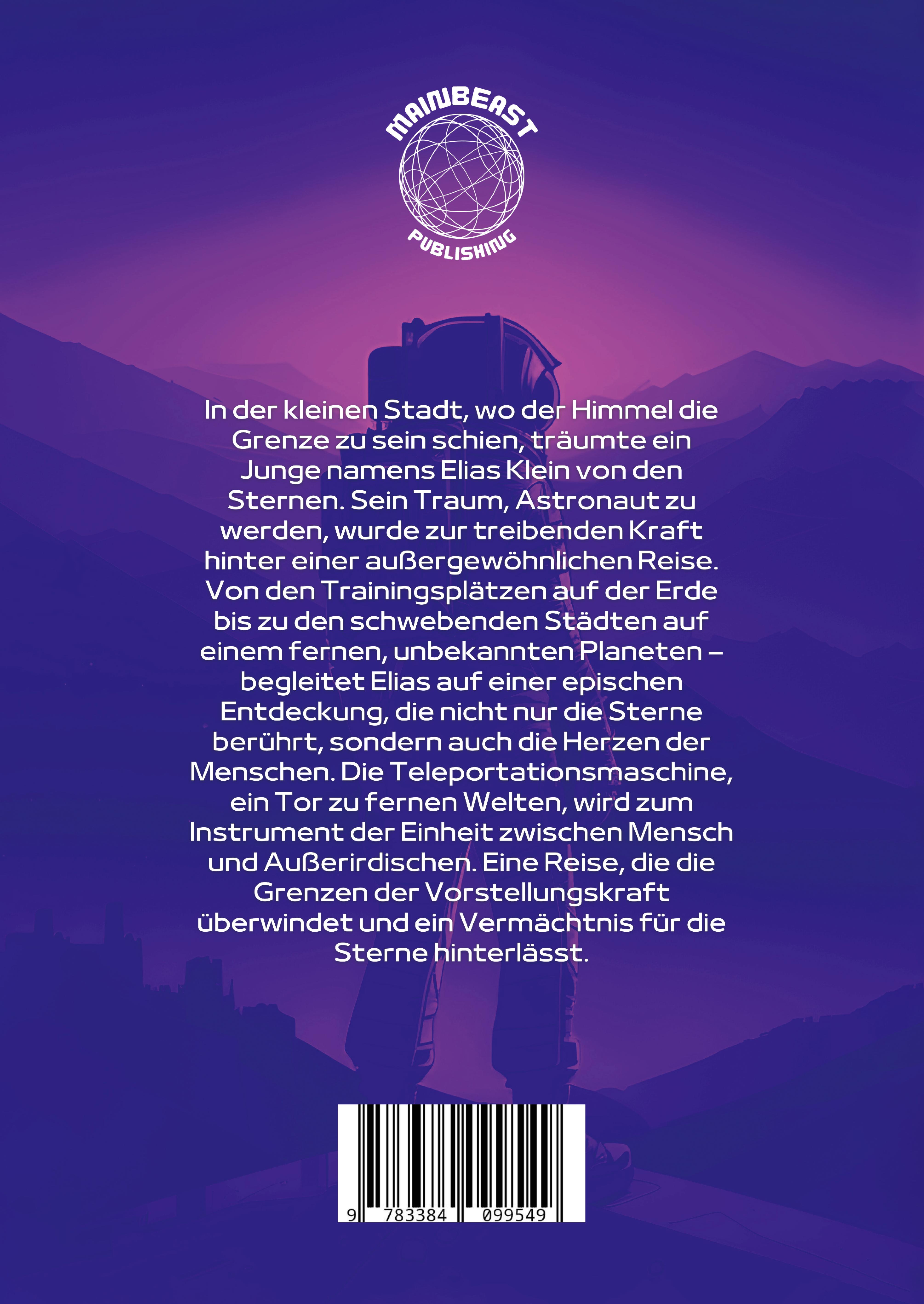 In der kleinen Stadt, wo der Himmel die Grenze zu sein schien, träumte ein Junge namens Elias Klein von den Sternen. Sein Traum, Astronaut zu werden, wurde zur treibenden Kraft hinter einer außergewöhnlichen Reise. Von den Trainingsplätzen auf der Erde bis zu den schwebenden Städten auf einem fernen, unbekannten Planeten - begleitet Elias auf einer epischen Entdeckung, die nicht nur die Sterne berührt, sondern auch die Herzen der Menschen. Die Teleportationsmaschine, ein Tor zu fernen Welten, wird zum Instrument der Einheit zwischen Mensch und Außerirdischen. Eine Reise, die die Grenzen der Vorstellungskraft überwindet und ein Vermächtnis für die Sterne hinterlässt.