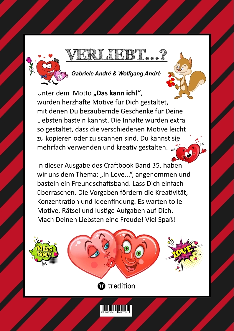 CRAFTBOOK - VERLIEBT - LIEBE MOTIVE - FREUNDSCHAFTSBAND - BASTELN - RÄTSEL - AUSMALVORLAGEN - AUFGABEN - HERZEN