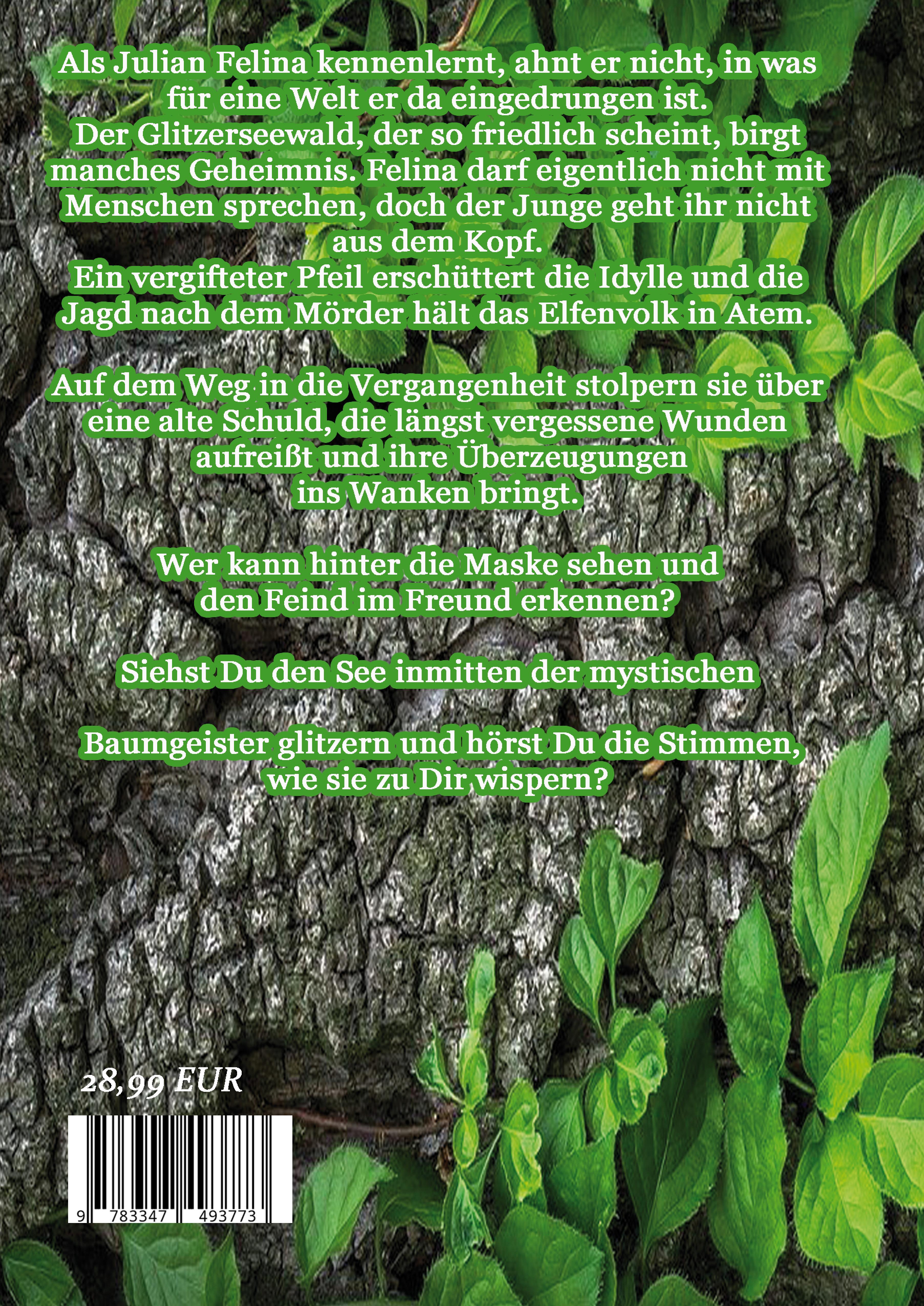 | Schlagworte | Abenteuer • Baumgeister • Elfen • Epos • Erste Liebe • Fantasie • Fantasy • Freundschaft • gefühlvoll • Glitzer • Gutherzig • Hoffnung • Jugendbuch • Liebe • listig • Macht • Magie • magische Welten • Märchen • Morde • Romantik • Schuld • Spannung • Tod • unbedarft • Untergang • Vergebung • Verrat • Wald • Zauberer • Zusammenhalt |