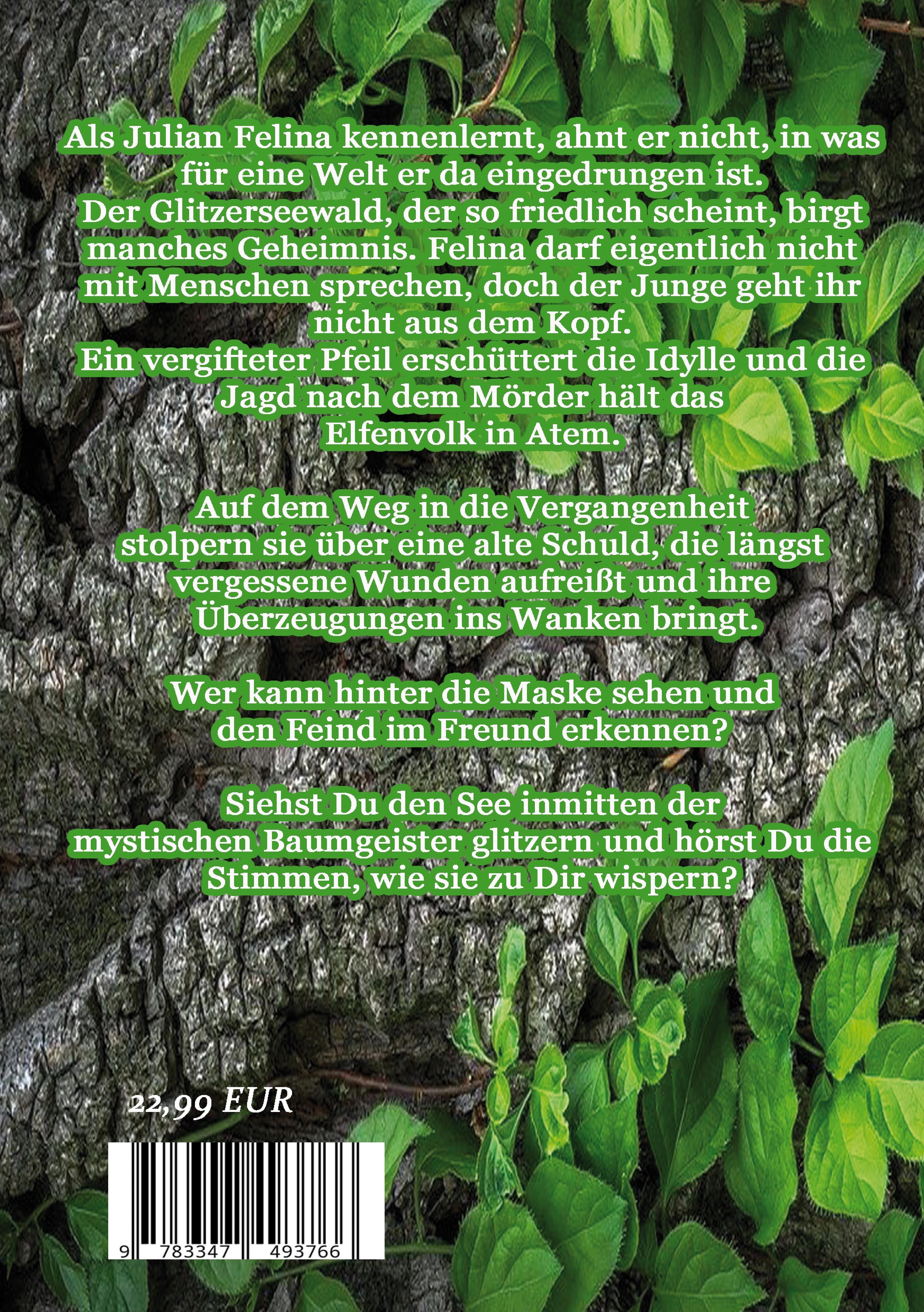 | Schlagworte | Abenteuer • Baumgeister • Elfen • Epos • Erste Liebe • Fantasie • Fantasy • Freundschaft • gefühlvoll • Glitzer • Gutherzig • Hoffnung • Jugendbuch • Liebe • listig • Macht • Magie • magische Welten • Märchen • Morde • Romantik • Schuld • Spannung • Tod • unbedarft • Untergang • Vergebung • Verrat • Wald • Zauberer • Zusammenhalt |