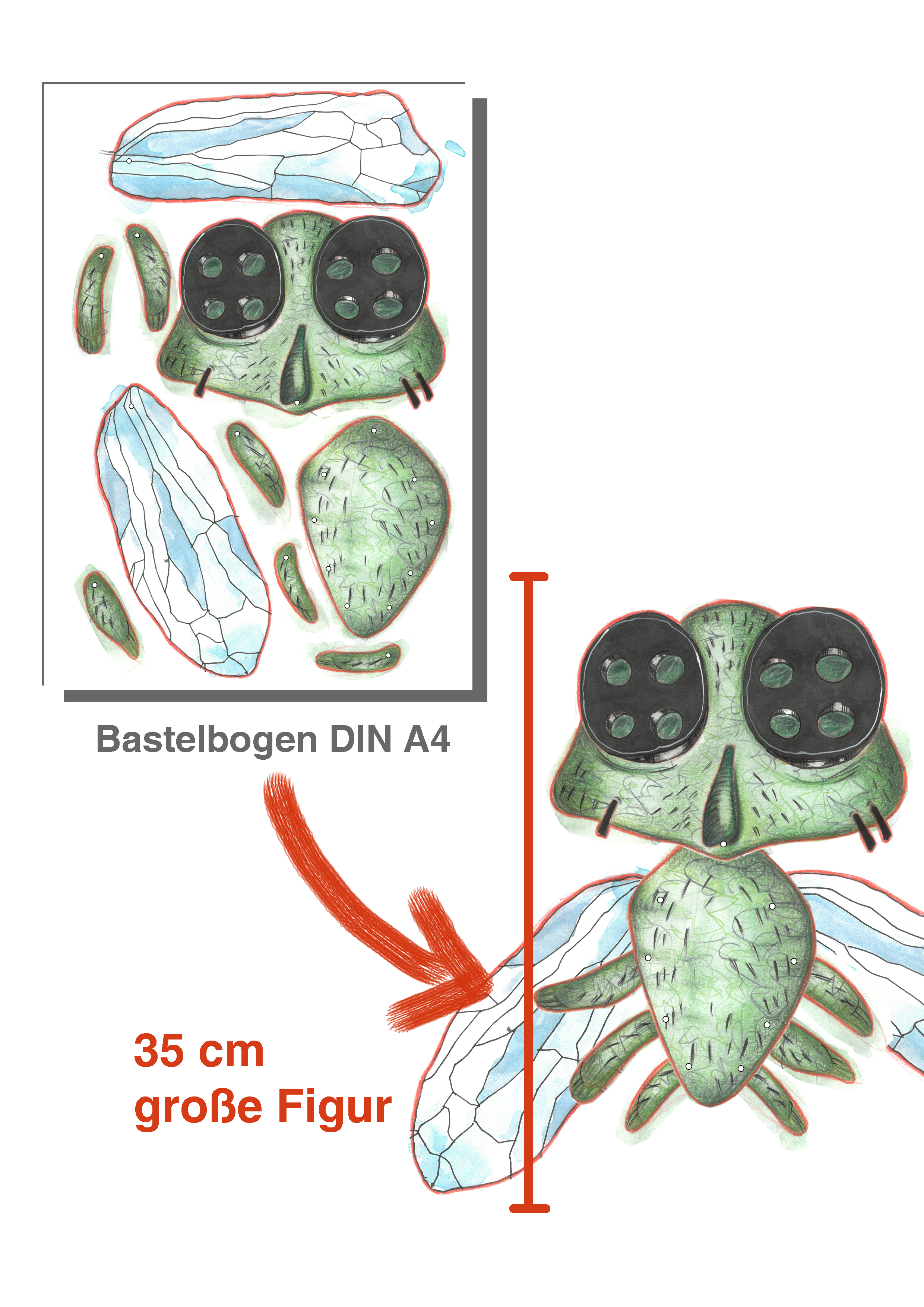 Bastel-Set 3: 7 Fliegen aus "Das tapfere Schneiderlein" aus den Märchen der Brüder Grimm. Bastelbögen ab 3 Jahren
