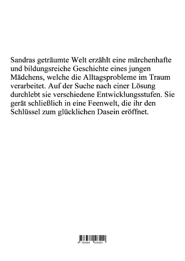Sandras geträumte Welt erzählt eine märchenhafte und bildungsreiche Geschichte eines jungen Mädchens, welche die Alltagsprobleme im Traum verarbeitet. Auf der Suche nach einer Lösung durchlebt sie verschiedene Entwicklungsstufen. Sie gerät schließlich in eine Feenwelt, die ihr den Schlüssel zum glücklichen Dasein verheißt.