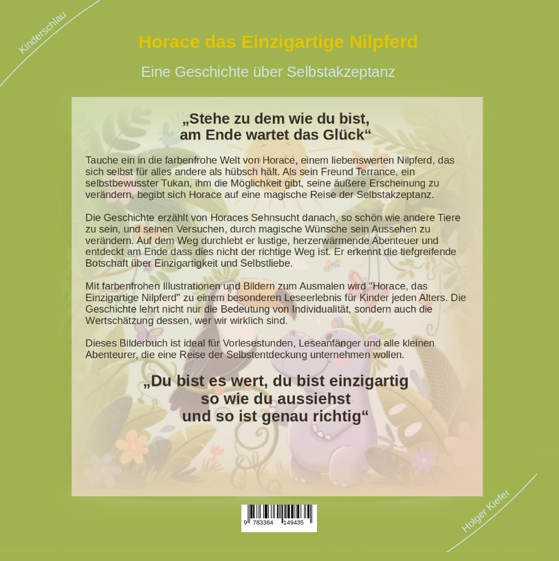 Holger Kiefer Dozent und Mental Health Master Coach Holger Kiefer ist ein renommierter Experte im Bereich der Populärwissenschaftlichen Medizin mit umfangreicher Erfahrung in der Vermittlung komplexer medizinischer Konzepte an ein breites Publikum. Als Dozent und Mental Health Master Coach hat er sich darauf spezialisiert, medizinische und mentale Themen auf verständliche und fesselnde Weise zu präsentieren, um Menschen dabei zu unterstützen, ein besseres Verständnis für ihre Gesundheit und ihr Wohlbefinden zu entwickeln. Mit seinen Kinderbüchern wie z.B. "Horace das Einzigartige Nilpferd Eine Geschichte über Selbstakzeptanz" greift er Themen auf, die eine frühkindliche Entwicklung psychologisch didaktisch fördern. Mit seiner Enthüllung über operative Tätigkeiten des CIA, für Erwachsene, setzt er einen neuen Markstein des Interesses an psychologische Manipulation zur Gewinnung von Informanten und Spionen und zeigt die Auswirkungen auf die gegenwärtige und zukünftige Politik der USA, China und Europa. Das historische Buch über die Schildbürger setzte der Autor und Publizist in moderne und zeitgemäße Sprache um. Die weiteren zukünftigen Ausgaben der Schildbürger decken irrationale Entwicklungen in Gesellschaft und Politik mit dem hintergründigen Humor der Schildbürger auf. Ebenfalls aus seiner Feder stammen die Bücher über die Prophezeiungen der Hopi: - Planet X und die Hopi-Prophezeiung: Enthüllung der Zukunft unserer Welt Wenn Wissenschaft auf Prophezeiung trifft - Die Hopi-Prophezeiungen - 10.000 Jahre alte Botschaften der amerikanischen Ureinwohner - HOPI PROPHEZEIUNG - Zwei Pfade: Zerstörung oder Überleben - Thomas Banyacya Spiritueller Ältester Die Rede von 1972 über die Gefahr und Zukunft jetzt aktuell - Die Hopi Geschichte und Prophezeiung New Mexico PBS aus dem Jahre 2009 jetzt aktuell Die Bücher von Holger Kiefer befassen mit populärwissenschaftlich aufgearbeiteten Themen der Gesundheit Spiritualität, aber auch mit Psychologie, Philosophie und Religion, kurzum mit dem, was uns Menschen in bestimmten Lebensphasen interessiert und uns wichtig ist.