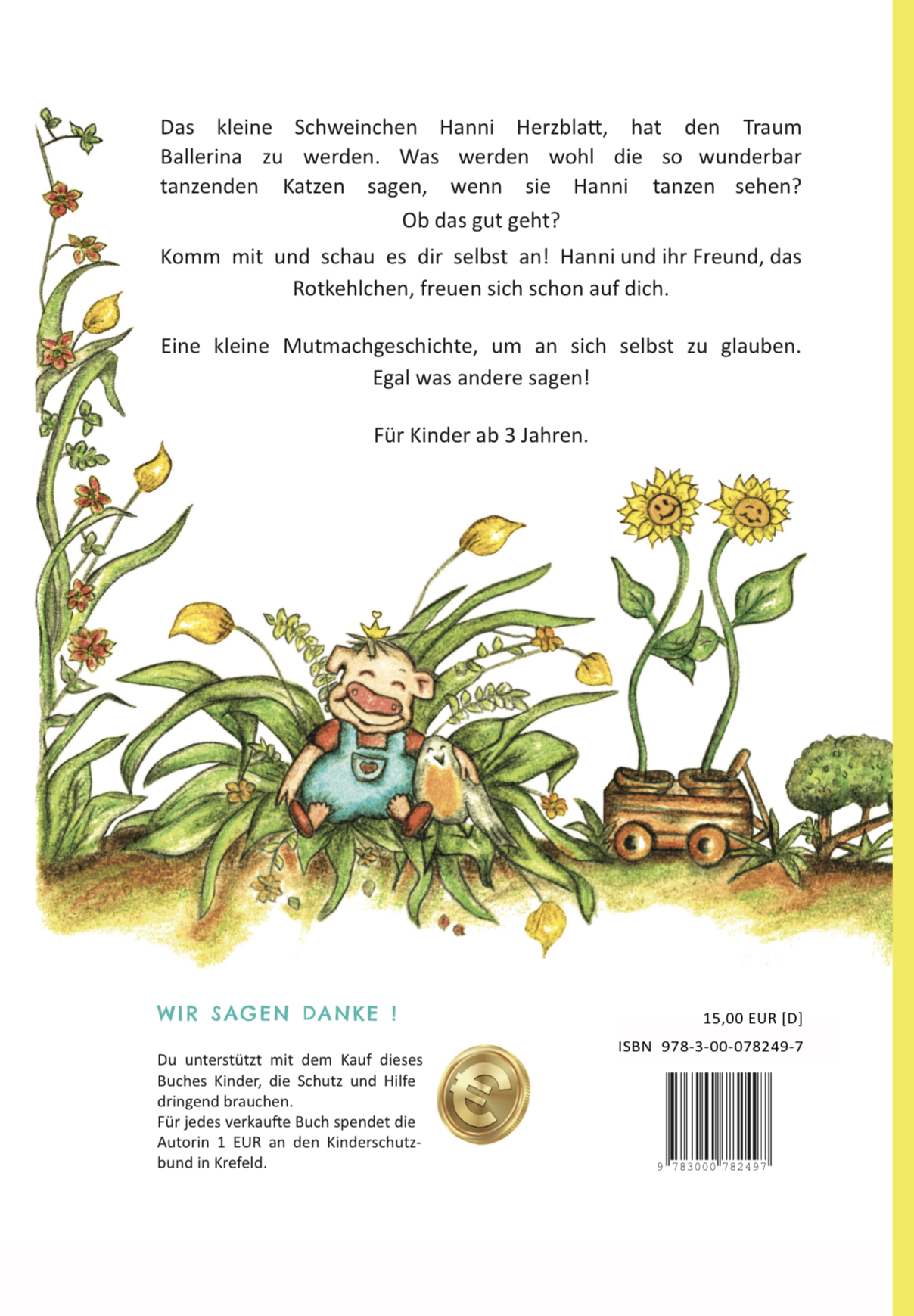 Das kleine Schweinchen Hanni Herzblatt, hat den Traum Ballerina zu werden. Was werden wohl die so wunderbar tanzenden Katzen sagen, wenn sie Hanni bei ihren ersten Tanzversuchen sehen.