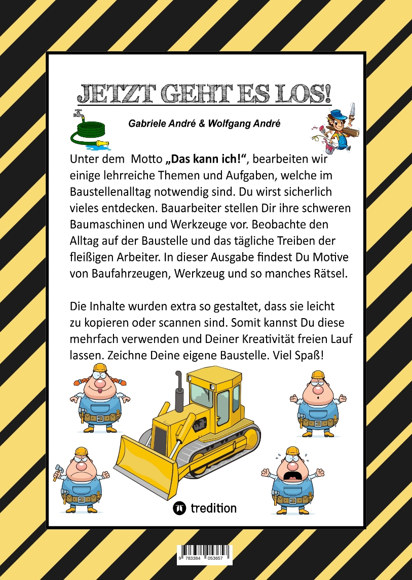 | Schlagworte | Aggregat • akkuschrauber • Arbeiter • Axt • Bagger • baggerschaufel • Batterie • Bauarbeiter • Baufahrzeuge • Baumaschinen • Baumaterial • Bäume • Baumhaus • Baustelle • Beton • Betonmischer • Blockhaus • Blumen • Blumenbeet • Bohrmaschine • Craftbook • Elektriker • Familie • Farbeimer • Farben • Gartengeräte • Gartenzaun • Geländewagen • Hacke • Hammer • Handwerker • Häuser • Hobel • Holz • Holzbretter • Holzfäller • Kettensäge • Kreissäge • Kubikmeter • Lastwagen • Latte • Lattenzaun • Maler • Maurer • Mülltonne • Pflanzen • Presslufthammer • Quadratmeter • Rasen • Rasenmäher • Rasentrimmer • Rechen • Ruckzuck • Säge • schalungsbretter • Schaufel • Schubkarren • Schweißen • Schwimmbecken • Spitzhacke • Stahlbohrer • Stahlträger • Straßenbau • Tischler • Traktor • Walze • Wasserschlauch • Werkzeugkasten • Zeichnen • Ziegel • Ziegelsteine • Zimmerer |