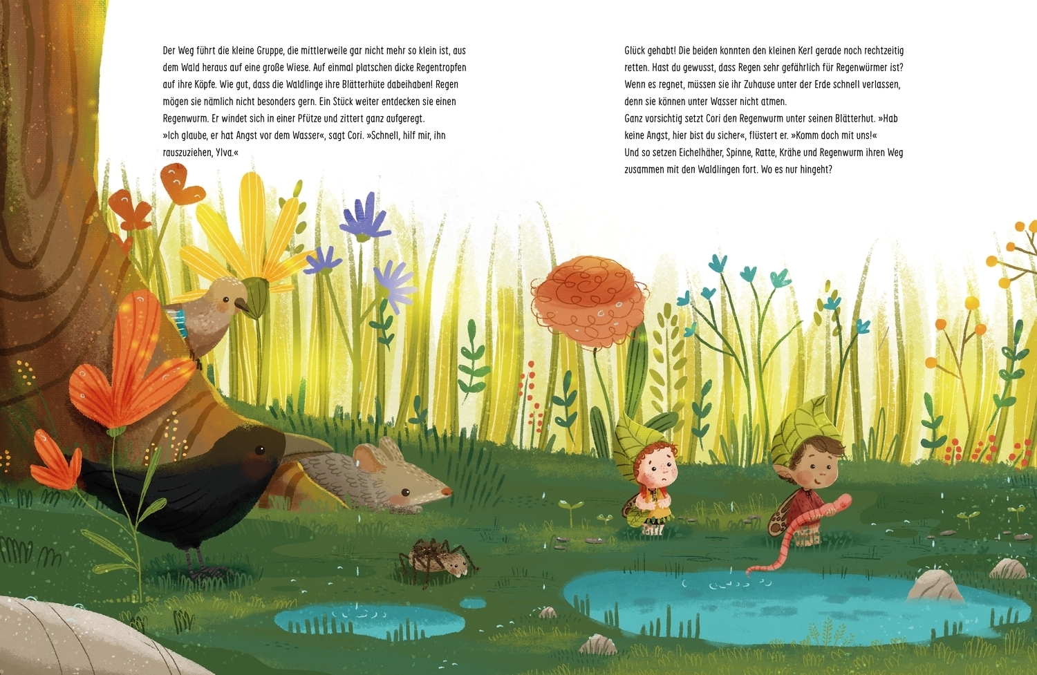 Cori und Ylva sind Waldlinge und die allerbesten Freunde. Sie leben in einem uralten Buchenwald, sind ziemlich klein, ziemlich mutig und ziemlich neugierig. Und sie wünschen sich nichts mehr, als mit den Tieren des Waldes sprechen zu können. Als Cori und Ylva eines Tages einem Eichelhäher begegnen, beginnt für die klitzekleinen Waldwesen ein riesengroßes Abenteuer, auf dem sie viele neue Freunde treffen. Ihr Weg führt die Waldlinge übers Felsental zu einem Bauernhof bis hin zur großen Lichtung. Und dort erkennen sie schließlich: Wenn wir den Tieren mit dem Herzen zuhören und genau hinschauen, dann sprechen wir auch ihre Sprache.