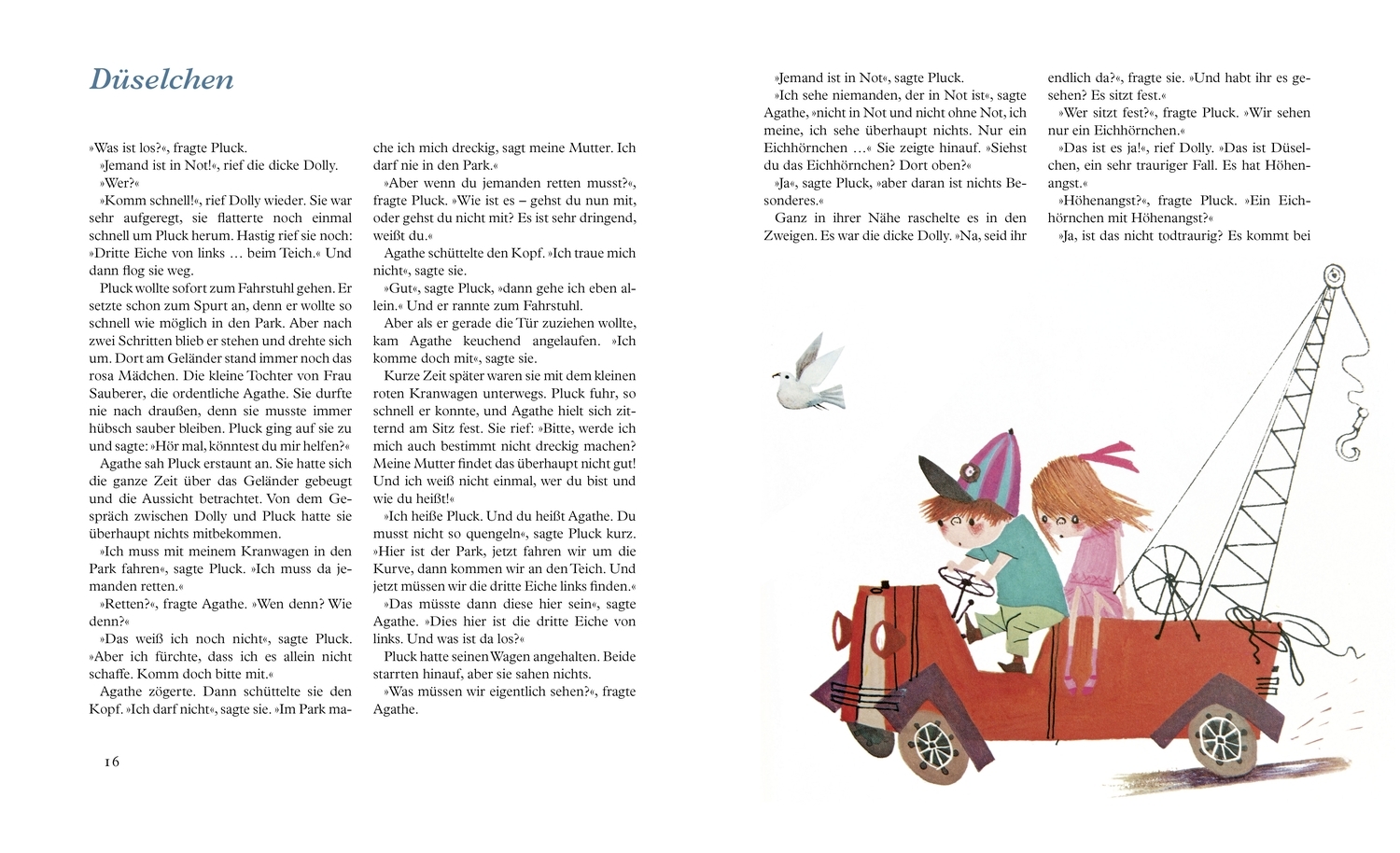 Tatütata - Pluck ist da! Aus seinem Wohntürmchen auf einem Hochhaus hat Pluck einen tollen Überblick. Und dank seines roten Kranwagens ist er stets zur Stelle, wenn jemand Hilfe braucht. So erlebt er mit den sechs kleinen Stampferchen aus dem zwanzigsten Stock, Freundin Agathe und der Taube Dolly jede Menge Abenteuer. Denn es gibt viel zu tun: Eichhörnchen Düselchen helfen, seine Höhenangst zu verlieren, den Fährwolf wieder zum Lachen bringen und dafür sorgen, dass Frau Sauberer täglich einen Löffel von der glücklich machenden Marmelade isst. Lustige Geschichten mit tollen Charakteren und vielen Illustrationen von Fiep Westendorp. Als liebenswerter Held erobert Pluck Kinderherzen im Sturm.