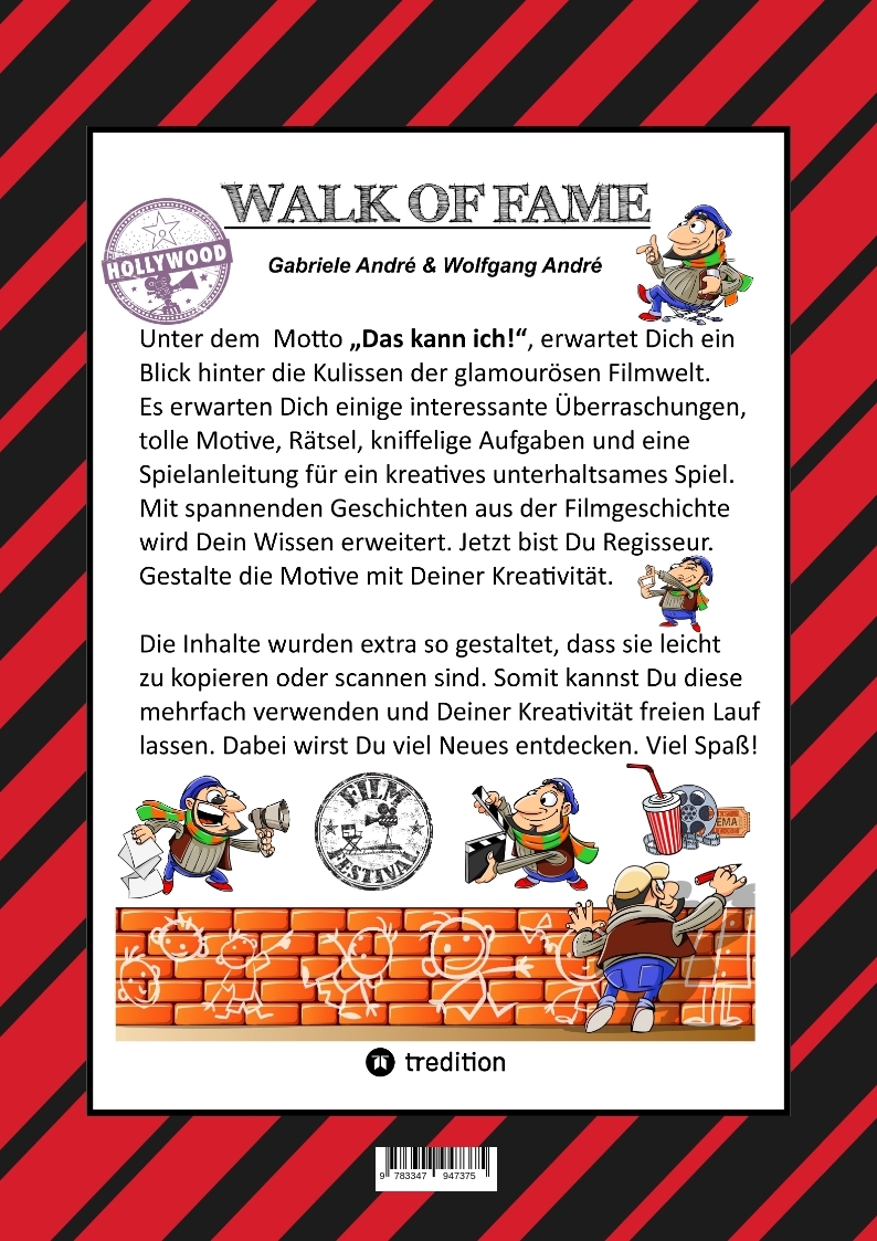 | Schlagworte | Actor • Antagonist • ART • Aufnahme • Blockbuster • Bühne • Camera obscura • Cinema • Craftbook • CUT • Drehbuch • DVD • Emotionen • equipment • Film • Filmemacher • filmklappe • Filmstar • Genre • Glamour • Helden • Hollywood • Hollywoodland • Kamera • Kino • Kreativität • Kulisse • Lachen • Licht • Los Angeles • Mainstream • Malen • Maske • MGM • Movie • Oscar • Paparazzi • Premiere • PRODUKTIONSSTUDIO • Produzenten • Protagonist • Regie • Regisseur • Requisiten • Schauspieler • screenplay • screenwriter • scribbles • SET • Setting • Spass • Spiel • Star • Storytelling • STROYBOARD • Studio • Stummfilm • STUNMAN • Stunt • take • Tanzen • Technik • Ton • Tonfilm • Treatment • TV • Universal • Unterhaltung • Visagistin • Walk of Fame • Zeichnen |