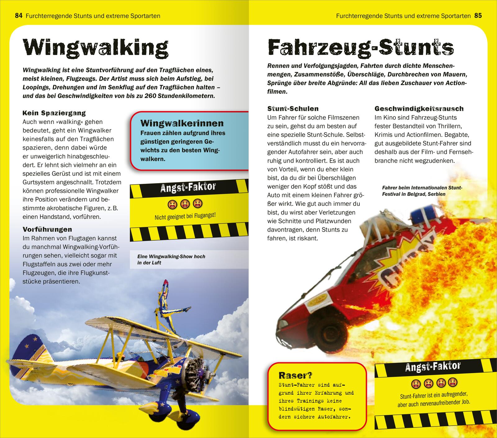 Dieses Buch ist für alle geeignet, die das Fürchten lernen wollen! Hier findest du eine Sammlung von angsteinflößenden Tieren, Naturgewalten und Orten, furchterregende Monster, Fähigkeiten und Phänomene sowie beängstigende Stunts und extreme Sportarten.