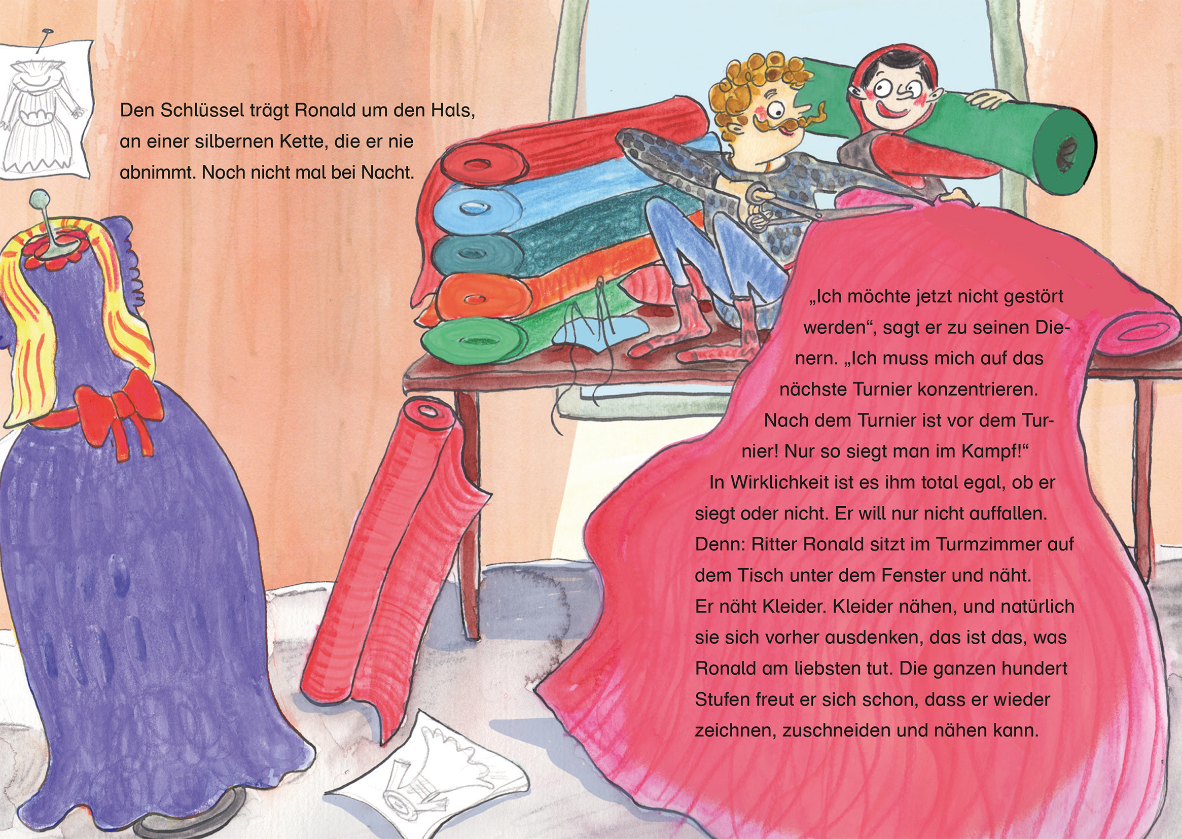 Ritter Ronald von Rumpelstein hat ein Geheimnis: Er näht lieber Damenkleider, als an Turnieren teilzunehmen oder gegen Drachen zu kämpfen. Das darf natürlich niemand wissen. Blöd nur, dass seine Kleider immer berühmter werden und auch die Königin des Landes darauf aufmerksam wird.