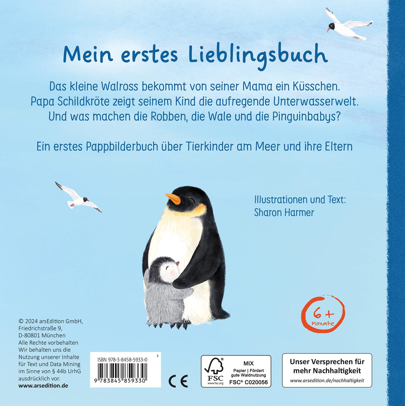Das kleine Walross bekommt von seiner Mama ein Küsschen. Papa Schildkröte zeigt seinem Kind die aufregende Unterwasserwelt und die Pinguinbabys lieben es zu kuscheln. Und was machen die Robbe und der Wal? Ein erstes Pappbilderbuch über Tierkinder am Meer und ihre Eltern.