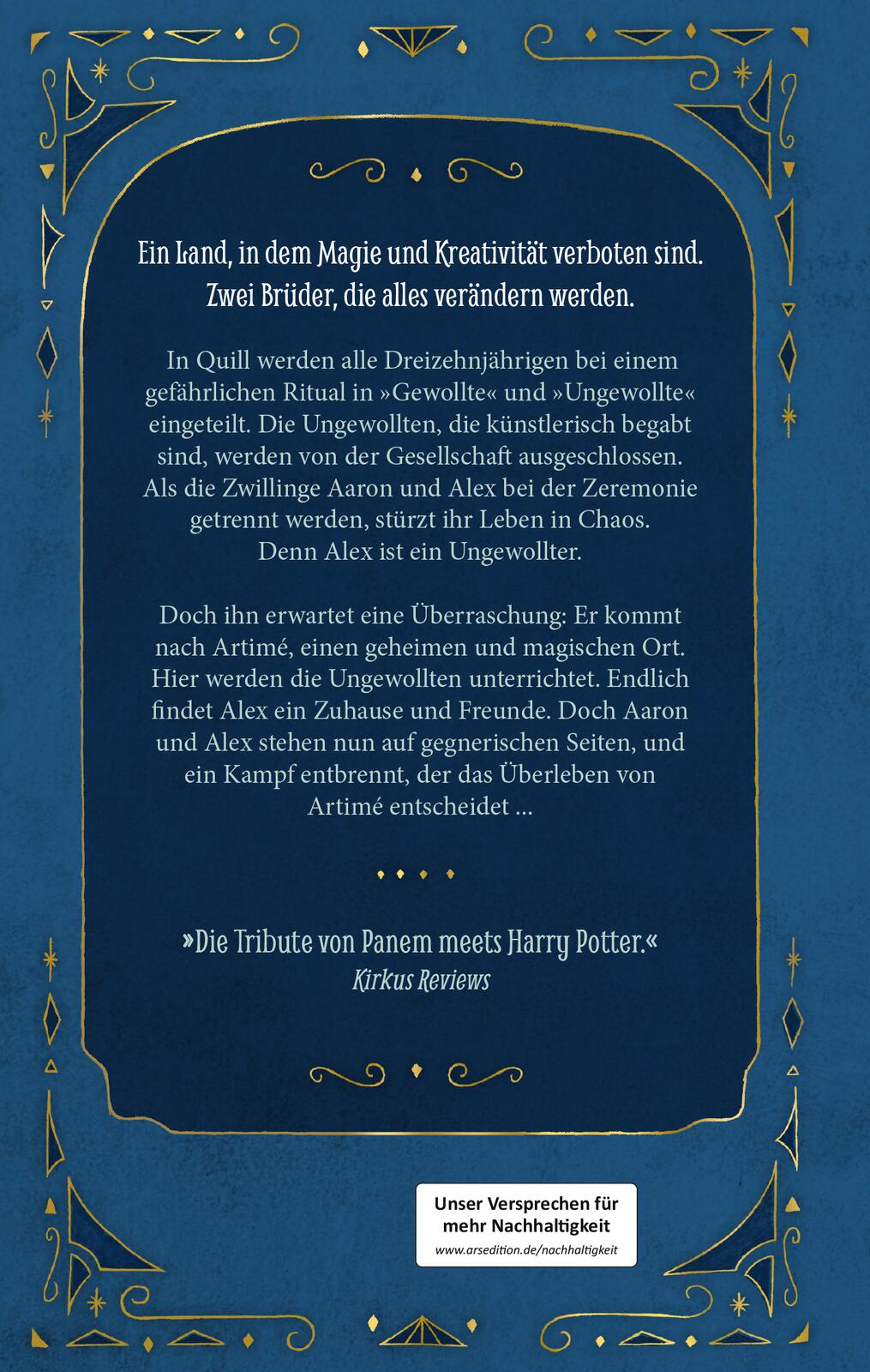 In Quill werden alle Dreizehnjährigen bei einem gefährlichen Ritual in "Gewollte" und "Ungewollte" eingeteilt. Die Ungewollten, die künstlerisch begabt sind, werden von der Gesellschaft ausgeschlossen. Als die Zwillinge Aaron und Alex bei der Zeremonie getrennt werden, stürzt ihr Leben ins Chaos.