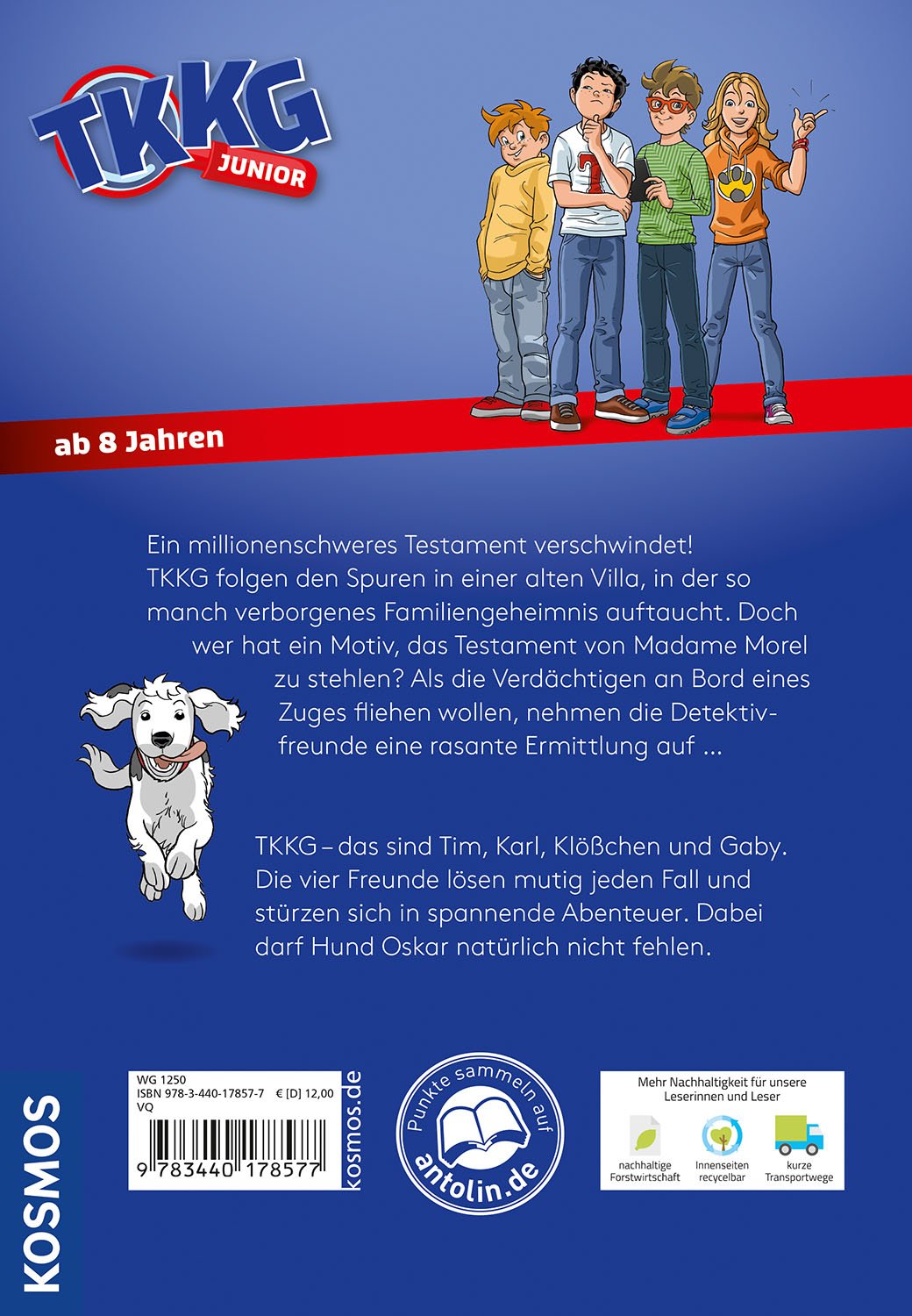 | Schlagworte | ab 8 • ab acht • Abenteuer • Abenteuergeschichte • Detektivclub • Detektive • Detektivgeschichte • Ermittlung • Fall lösen • Freunde • Freundschaft • Gaby • Karl • Kinderbuchreihe • Kinderkrimi • Klößchen • Krimi • Millionenstadt • Oskar • Spannung • Testament • Tim • Verfolgungsjagd |