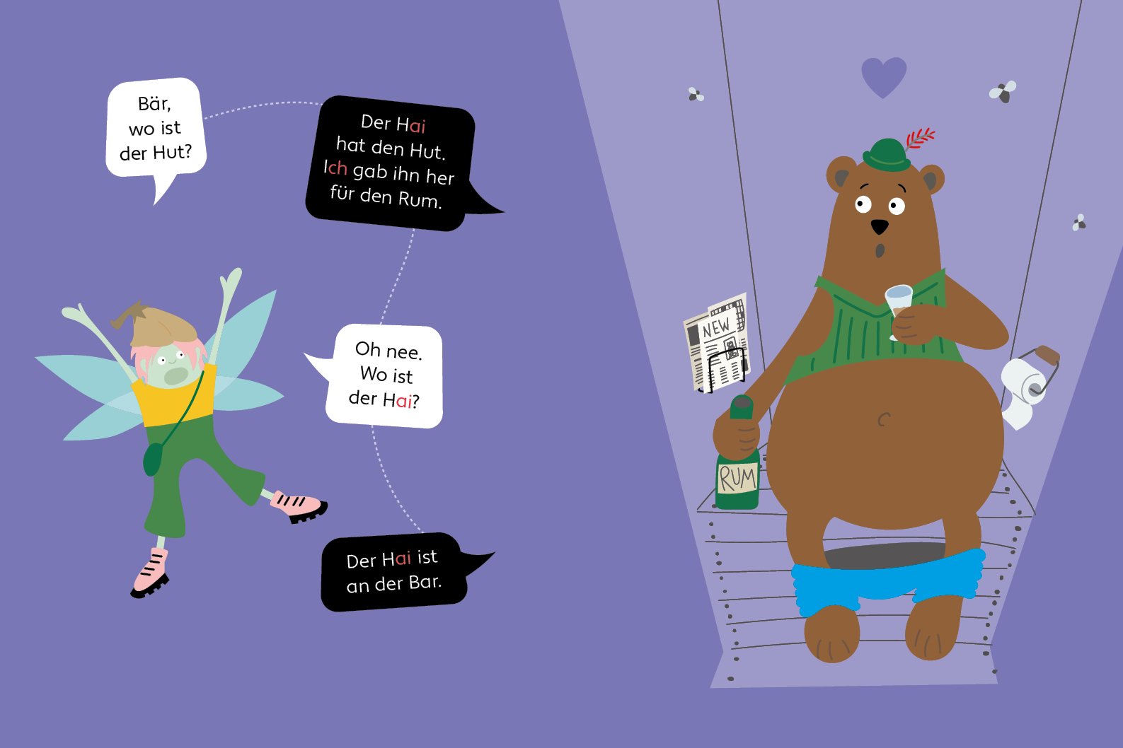 Als einfaches Comic mit kurzen und sich wiederholenden Texten und farbenfrohen Bildern regt dieses Buch zum Lesen an – die Texte können auch gut im Wechsel gelesen werden. Doch das Besondere: Das Buch kommt mit kurzen Wörtern aus (max. 3 Buchstaben). Dass das funktioniert, zeigt diese charmante Geschichte. Geeignet für Vorschulkinder bzw. Kinder, die die ersten Buchstaben für sich entdeckt haben.