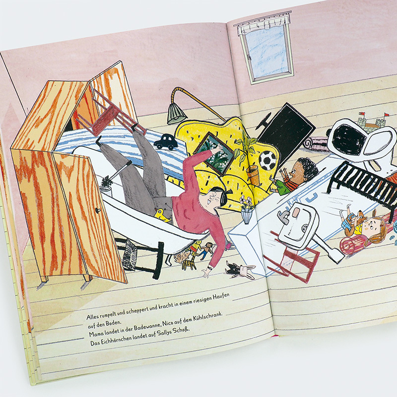 „Heute kommt Nico zum Spielen“, sagt Mama. „Aber das Eichhörnchen darf er nicht haben“, sagt Sally. „Das ist nämlich ganz allein meins.“ Damit ihr Freund Nico nicht damit spielt, packt Sally ihr Lieblingskuscheltier kurzerhand in den Schrank, bevor er zu Besuch kommt. Aber was ist mit der Ritterburg? Oder der Eisenbahn? Am Ende landen sogar der Kühlschrank, die Toilette und Sallys Mama im Schrank. Zuletzt auch Nico selbst. Aber so ganz allein ist es dann auch ziemlich langweilig. Und was machen die da drinnen im Schrank eigentlich alle zusammen? Etwa Spaß haben? Ein herrlich anarchisches und urkomisches Bilderbuch rund um das Thema Teilen, das die Gefühle von Kindern ernst nimmt. Und an dessen Ende die wunderbare Erkenntnis steht: Gemeinsam Spielen ist doch das Allerschönste!