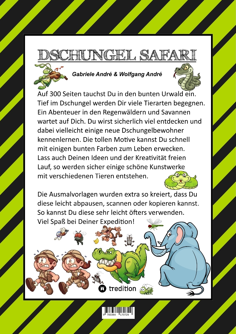 | Schlagworte | Affen • Amazonas • Ameisen • Ameisenbär • Anaconda • Ara • Axolotl • Bambus • Bären • Bäume • Bienen • Büffel • BUSCHBEWOHNER • Capybara • Chamäleon • Dschungel • Dschungelbuch • Dschungelpflanzen • Echsen • Eingeborene • Elefanten • Faultiere • Fische • Fledermäuse • Fluss • Frösche • Gorilla • Gräser • Harpyie • Insekten • Jaguar • Jungle • JUNGLEMIX • Käfer • KASUARE • Kids • Kinder • Klapperschlange • Kolibris • Komodowaran • Kreativität • Krokodil • Larven • Lianen • Libelle • Löwen • Malen • Mamba • Mäuse • Mega Malbuch • Motive • Nashorn • Nilpferd • Oasen • Orangutan • Ozelot • Palmen • PANGOLINE • Papageien • Paradiesvogel • Pfeilgiftfrösche • Pferde • Pflanzen • Piranha • Raubkatzen • Raupe • Regenwald • Rinder • Säugetiere • Savannen • Schildkröten • Schlangen • Schmetterling • Schmetterlinge • Seeschlangen • Skorpion • Spinnen • Stier • Sumpf • Tapire • Tarzan • Termiten • TIEGATTUNGEN • Tiere • Tiger • Tropen • TROPENBEWOHNER • Tukan • Urwald • Vögel • Vogelspinne • Wasserfall • Wasserschwein • WELCOME INTO THE JUNGLE • Werk • Würmer • Zebra • Zeichnen |