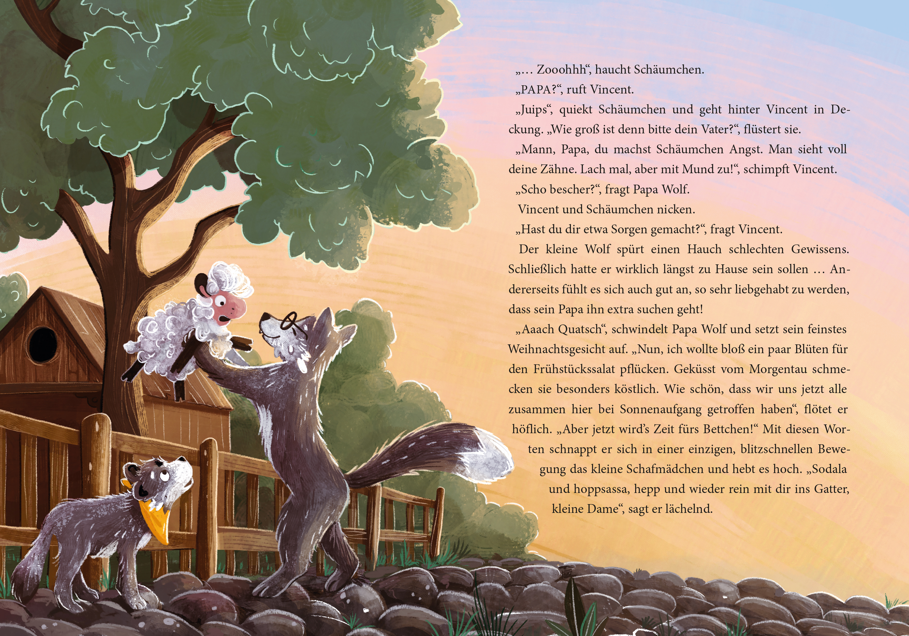 Der kleine Wolf Vincent lebt mit seiner Familie im Grimmwald - doch da ist es finster und bitterkalt, und Familie Wolf sehnt sich nach Sommer! Ein neues Zuhause muss her. Kurz entschlossen machen sich Papa Wolf und Vincent auf den Weg in die große Stadt, denn dort soll ja bekanntermaßen alles besser sein. Und siehe da: Sie entdecken einen richtigen Mittendrinwald ... oder, na ja, vielleicht ist es auch nur ein Park. Doch aller Anfang ist schwer, und so muss sich Vincent als Hundewelpe tarnen und die Umgebung erkunden. Im Streichelzoo trifft er das kleine Lamm Schäumchen, das nur so darauf brennt, ein echtes Abenteuer zu erleben ...