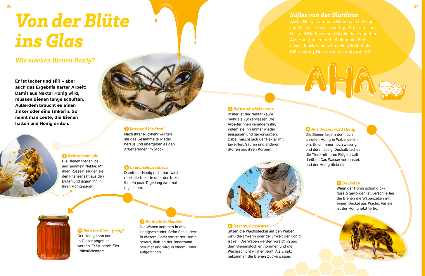 | Schlagworte | ab 8 Jahren • Afrikanisierte Honigbiene • Ameisenwespe • Ammenbiene • Arbeiterin • Artensterben • Artenvielfalt • Bestäubung • Biene • Bienenforschung • Bienenfresser • Bienengift • Bienenkönigin • Bienenschutz • Bienenschwund • Bienenstachel • Bienensterben • Bienenstich • Bienenstock • Bienentanz • Bienenvolk • Bienenwachs • Biodiversität • Blutbiene • Blüte • Blütenhonig • Blütenstaub • Bruthöhle • Deutsche Wespe • Drohn • Duftspur • Erderwärmung • Facettenauge • Geruchssinn • Gift • Hautflügler • Hochzeitsflug • Honig • Honigbiene • Honigernte • Honigerzeugung • Honigherstellung • Honigproduktion • Honigtau • Hornisse • Hummel • Imker • Imkerei • Imkerin • Insekt • Insektenhotel • Insektenstaat • Insektensterben • Killerbiene • Kinder • Kinderbuch • Kindersachbuch • Klimakrise • Klimawandel • Kommunikation • Kundschafterin • Larve • Nektar • Nisthilfe • Nistplatz • Nutzpflanze • Pestizid • Pflanzenschutzmittel • Pollen • Reinigungsflug • Sachbuch • Samenbombe • Sammlerin • Schwänzeltanz • schwärmen • Summen • Tier • überwintern • Vorkosterin • Wabe • Wabenzelle • Wachsplättchen • Wächterbiene • Waldhonig • Was ist Was • Weiselzelle • Weltbienentag • Wespe • Wildbiene • Winterruhe • Wintertraube • Wissen |
