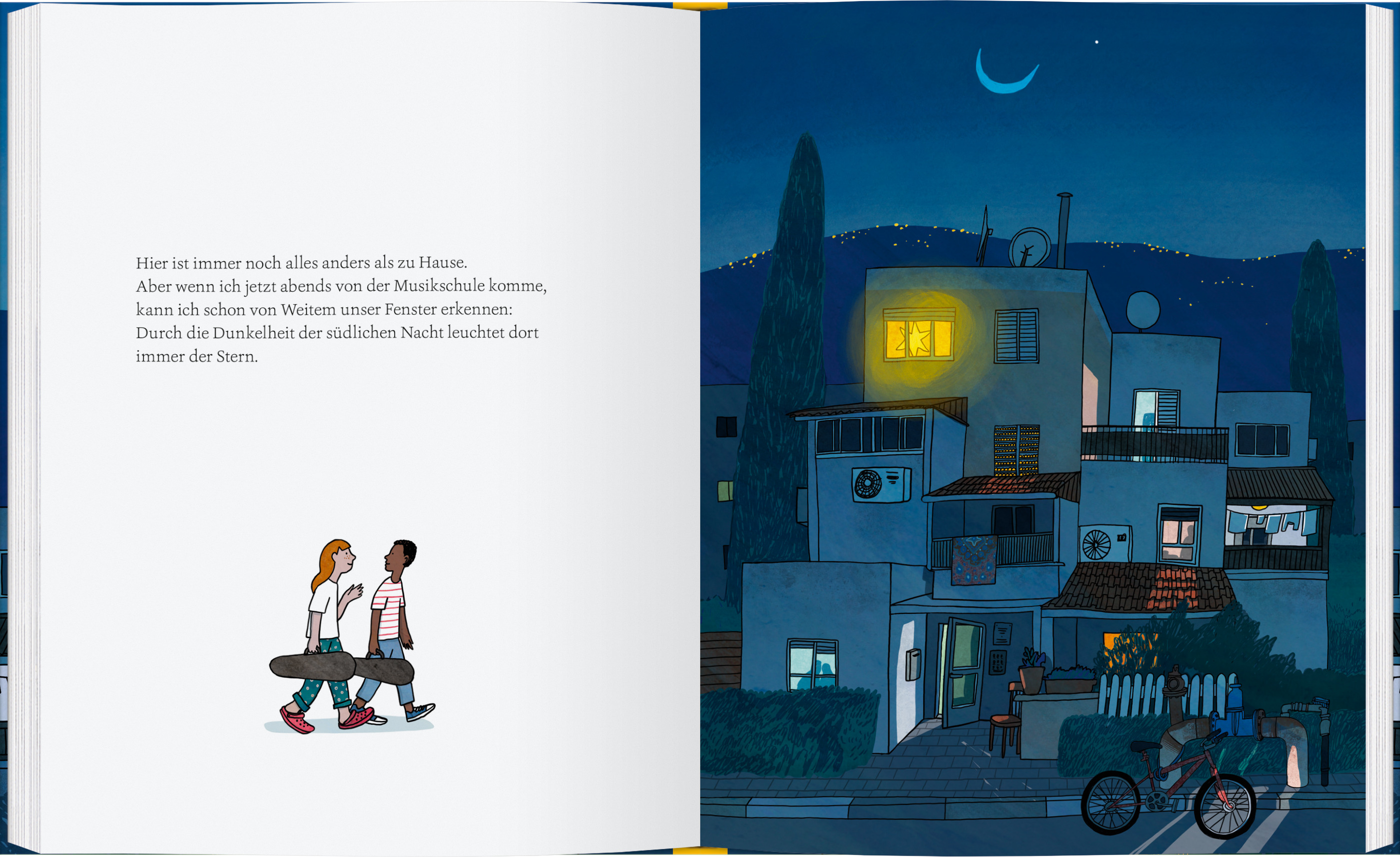 Als der Krieg beginnt, müssen ein junges Mädchen und seine Mutter ihre Heimat verlassen und in einem fremden Land Zuflucht suchen. Alles ist hier fremd: die Sprache, das Essen, die neue Wohnung … Sogar sie selbst sind sich fremd geworden. Doch als – wie daheim – im Fenster ein Stern in der Dunkelheit leuchtet, wird aus der Fremde langsam ein neues Zuhause.