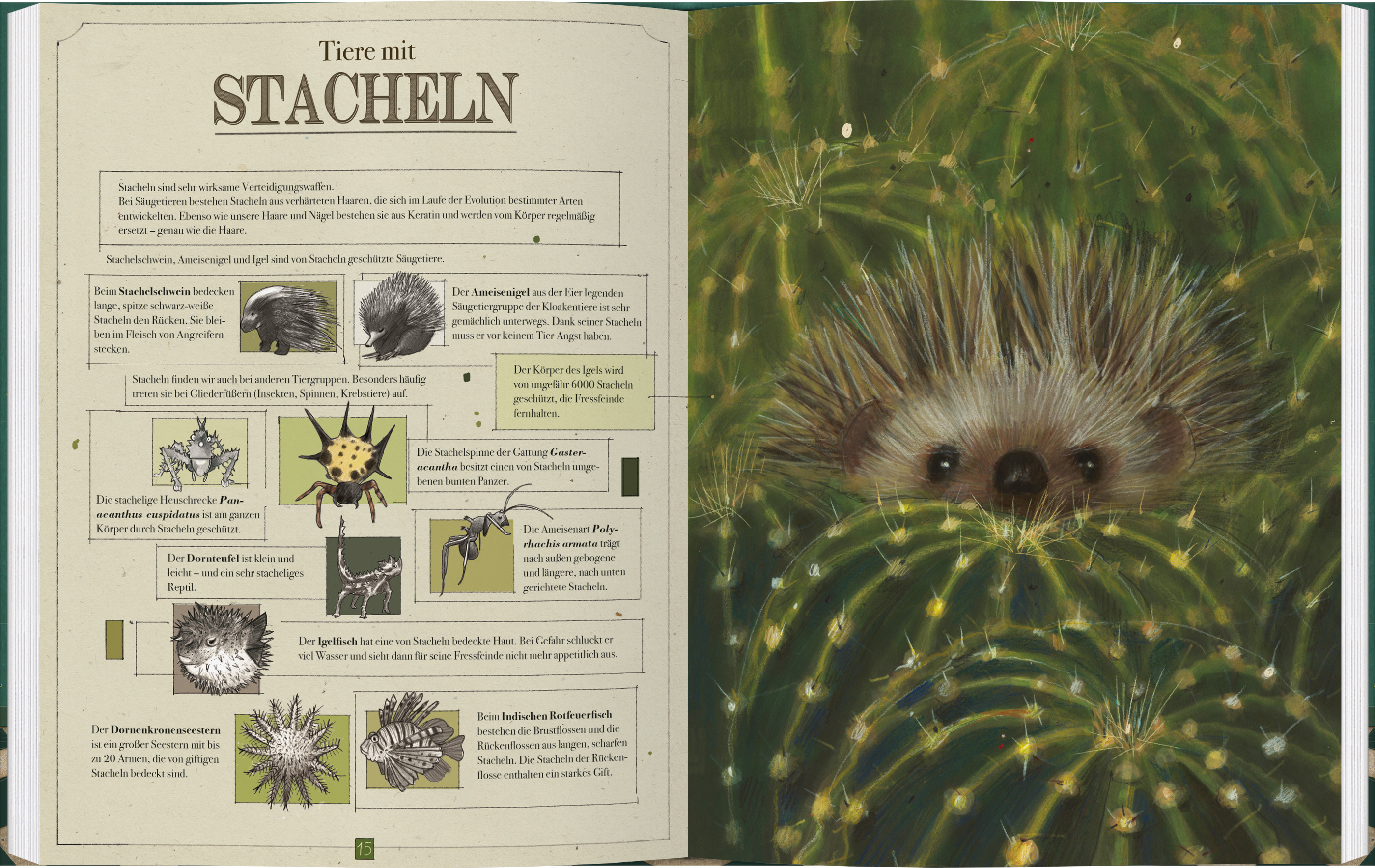 | Schlagworte | Besonderheit • Evolution • Fähigkeiten • Fell • Gehörn • Größe • Humor • illustriertes Buch • Kindersachbuch • Merkmale • Panzer • Schnurrhaare • Stachel • Tiere • Tierwelt • Zähne |