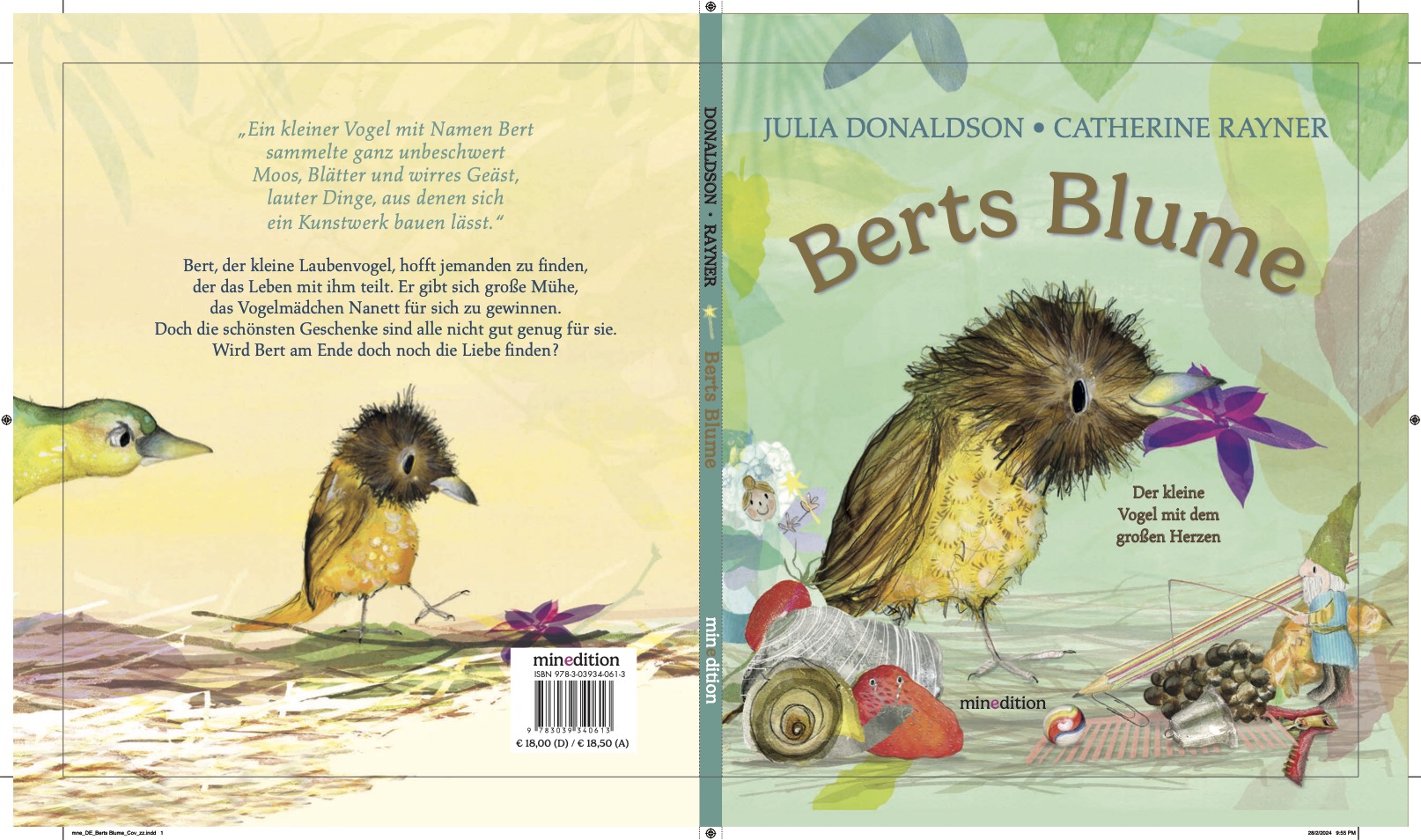 Ein kleiner Vogel mit Namen Bert sammelte ganz unbeschwert Moos, Blätter und wirres Geäst, lauter Dinge, aus denen sich ein Kunstwerk bauen lässt."Richtig gut ist das geworden", so denkt sich Bert."Doch noch schöner könnt' es sein, wohnte ich hier nicht allein."Ein Bilderbuch/ Kinderbuch für Kinder ab 3 Jahren- Der Vogel Bert wird garantiert das Herz der kleinen und großen Leser erobern.- Liebe und Freundschaft gewinnt man nicht mit materiellen Dingen- Über Bescheidenheit und Großzügigkeit - Geschichte erzählt in Reimform von der Autorin des "Grüffelo", Julia Donaldson- Von der Illustratorin der Titel "Molly, Olli und Eule" und "Arlo kann nicht schlafen"- Mit kurzem Sachteil über den Laubenvogel