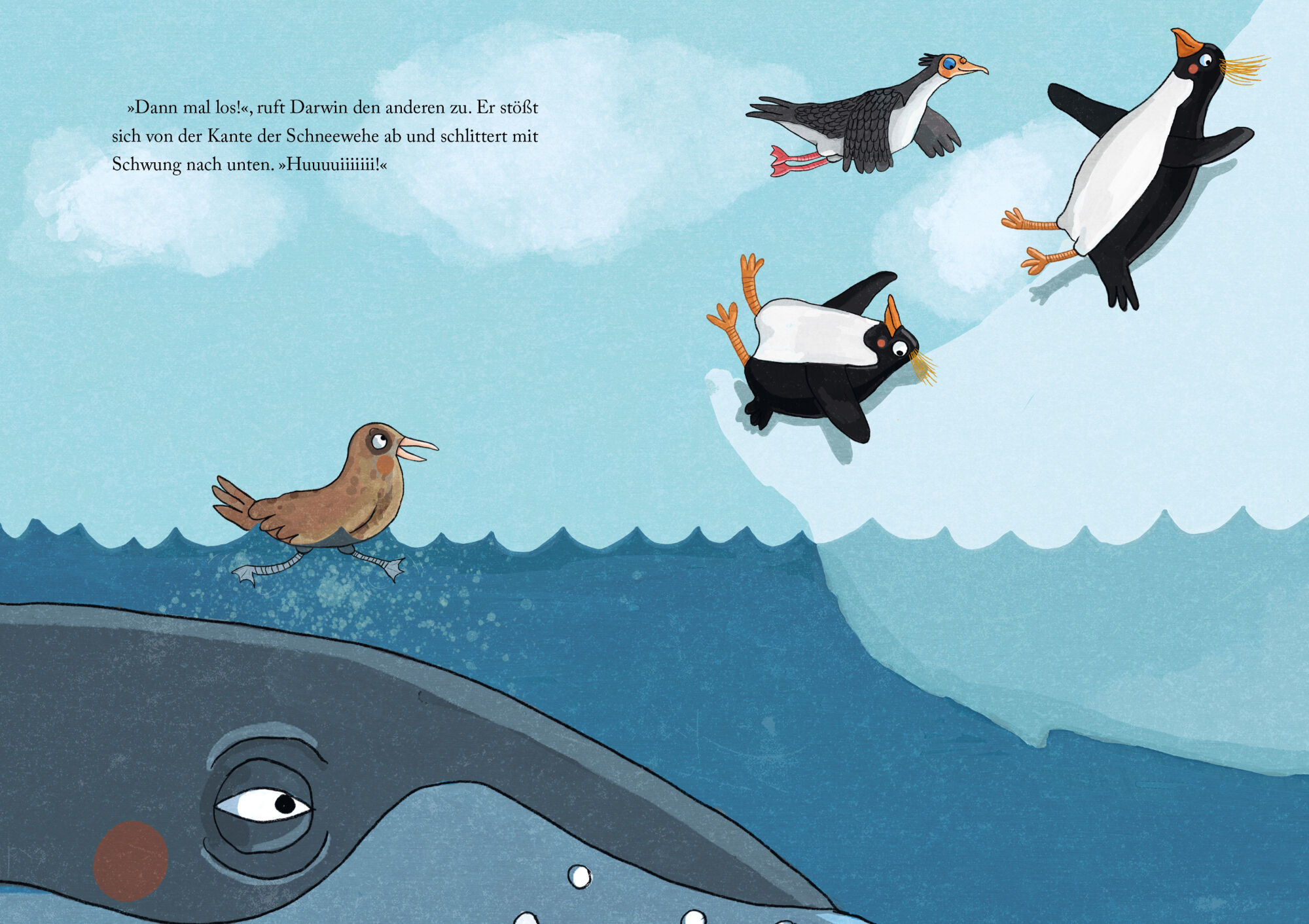 Alles ist friedlich auf dem antarktischen Eis. Pinguin Darwin genießt die Ruhe und das Schneesurfen mit Kumpel Ro und Kormorandame Fred. Doch eines Tages herrscht plötzlich Chaos: Ein paar Wale wurden im Eis eingeschlossen und können nicht zurück in den Ozean. Hilfe muss her! Doch die kommt ausgerechnet vom lästigsten Vogel der Antarktis: Die Skua Lametta geht mit ihrer Angeberei allen tierisch auf die Nerven. Seit sie mal Menschen getroffen hat, kennt sie sich bestens aus, behauptet sie. Aber dass die Menschen schwimmende Geräte besitzen, die Eis knacken können, ist natürlich Quatsch. Oder? Eine abenteuerliche Reise über das Eis beginnt.»Wilde Woche« - tierisch lustige Vorleseabenteuer mit spannenden Sachinformationen