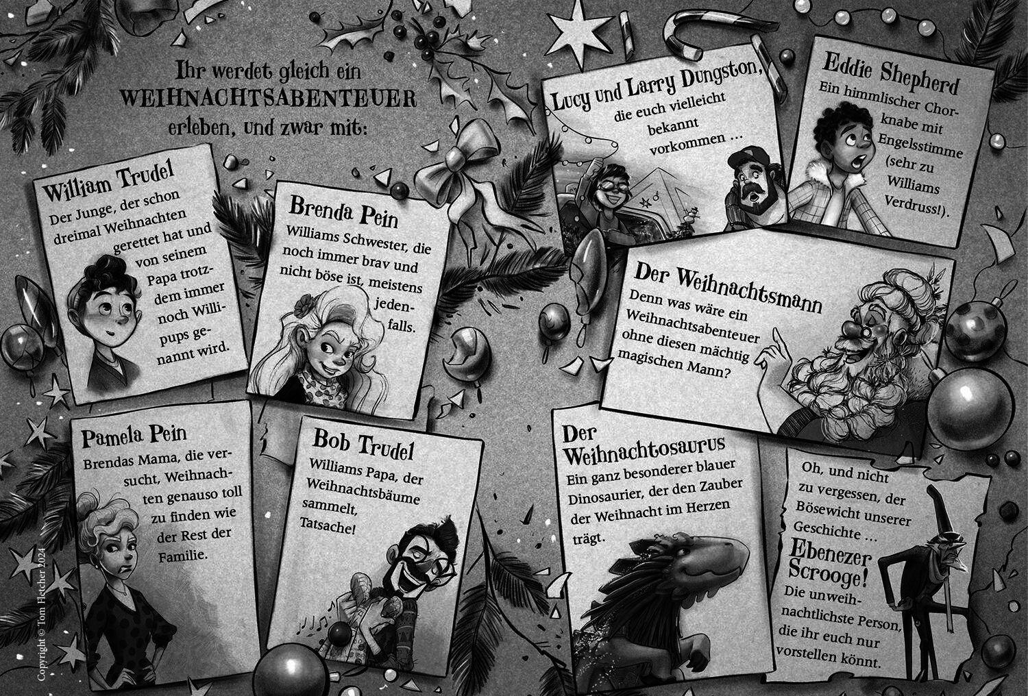 Habt ihr schon einmal von Ebenezer Scrooge gehört? Der geizigste, elendeste Geizhals, der Weihnachten hasst, aus diesem sehr berühmten alten Buch? Der Mann, der eher BAH HUMBUG als HO HO HO sagt? Was wäre, wenn er SEINE Geschichte verlässt, um in dieser aufzutauchen? Er hat große Pläne ... er will WEIHNACHTEN ABSAGEN! Aber keine Panik - William Trudel und sein allerbester Freund, der Weihnachtosaurus, können das nicht zulassen. Sie sind fest entschlossen, Scrooge aufzuspüren und Weihnachten vor der völligen Scrooge-Verwandlung zu retten! Und sie sind nicht allein. Die ganze Trudel-Familie, Williams neue Freunde Eddie und Lucy und natürlich der Weihnachtsmann selbst sind hier, um zu helfen! Kann diese Weihnachtscrew Scrooge aufhalten, bevor es zu spät ist und Weihnachten für immer zu HUMBUG wird?Ein fantastisches Abenteuer mit dem beliebtesten Weihnachtsdino aller Zeiten - zauberhaft illustriert mit über 100 Schwarz-Weiß-Zeichnungen: weihnachtlicher Lesespaß für die ganze Familie!