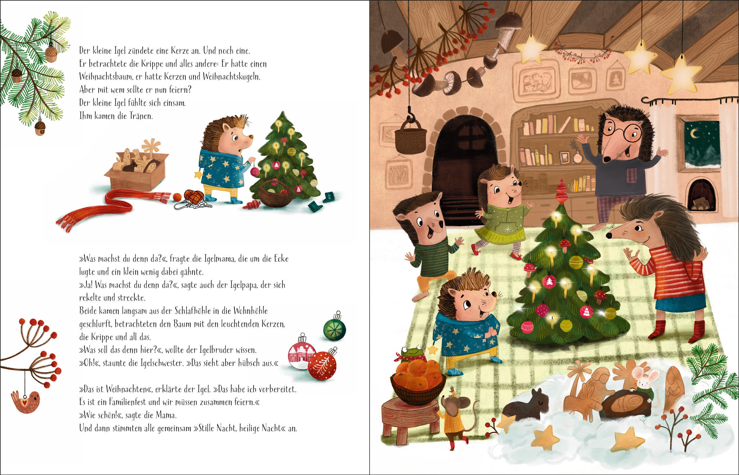 Winterschlaf? Nicht in diesem Jahr! Der kleine Igel staunt: Was ist das für ein glitzernd weißes Winterwunder, das vor der Igelhöhle auf ihn wartet? Schnee! Und es schlafen gar nicht alle im Winter, wie Mama Igel gesagt hat. Im Gegenteil, die anderen Tiere haben sogar ziemlich viel zu tun. Denn sie bereiten sich auf ein Fest vor, das dem kleinen Igel sehr besonders scheint. Weihnachten! Das klingt wunderbar! Aber wie geht das nur mit dem Weihnachten-Feiern? Das will der kleine Igel unbedingt herausfinden und macht sich auf die Suche nach dem Geheimnis des schönsten Fests von allen ...