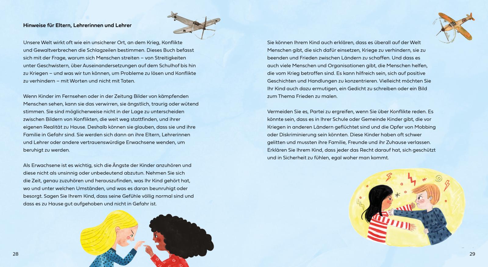 | Schlagworte | Angst • ärgern • Bilderbuch • Entschuldigung • Flucht • Frieden • Geschwister • Hilfe • Kampf • Kämpfen • Kinderbuch • Konflikte lösen • Krieg • Lösungen • Macht • Miteinander reden • Nachrichten • Probleme • Respekt • Sachbilderbuch • Schuld • Soldat • Streit • Streiten • Wut • Zerstörung |