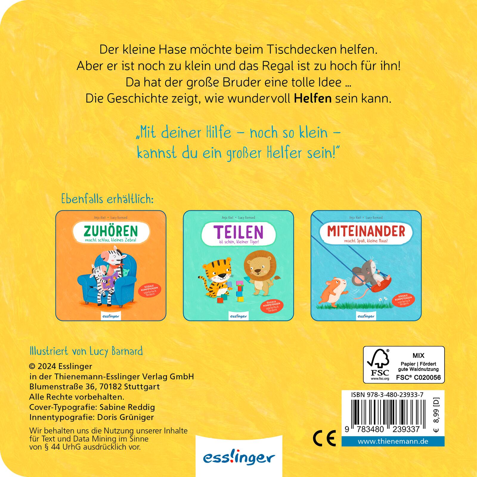 Der kleine Hase möchte beim Tischdecken helfen. Aber er ist noch zu klein und das Regal ist zu hoch für ihn! Da hat der große Bruder eine tolle Idee ...