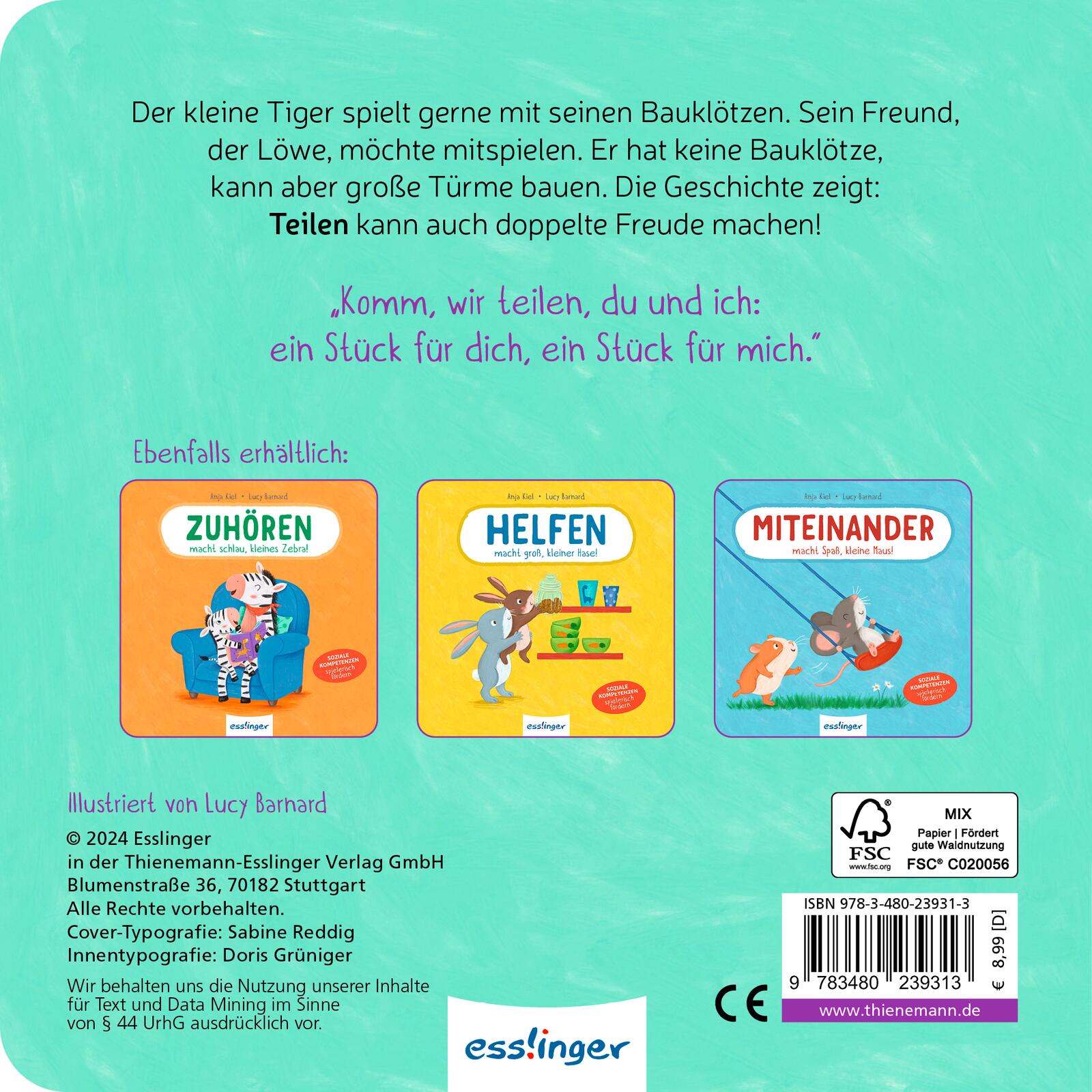 | Schlagworte | Achtsamkeit • Alltagsgeschichte • Emotionale Entwicklung • Emotionale Kompetenz • Empathie • Freundschaft • Gefühle • Gutes Benehmen • Höflichkeit • Kinderbuch • Kindergarten • Kita • Pappebuch • Respekt • Soziale Kompetenz • Teilen • Vorlesegeschichte |