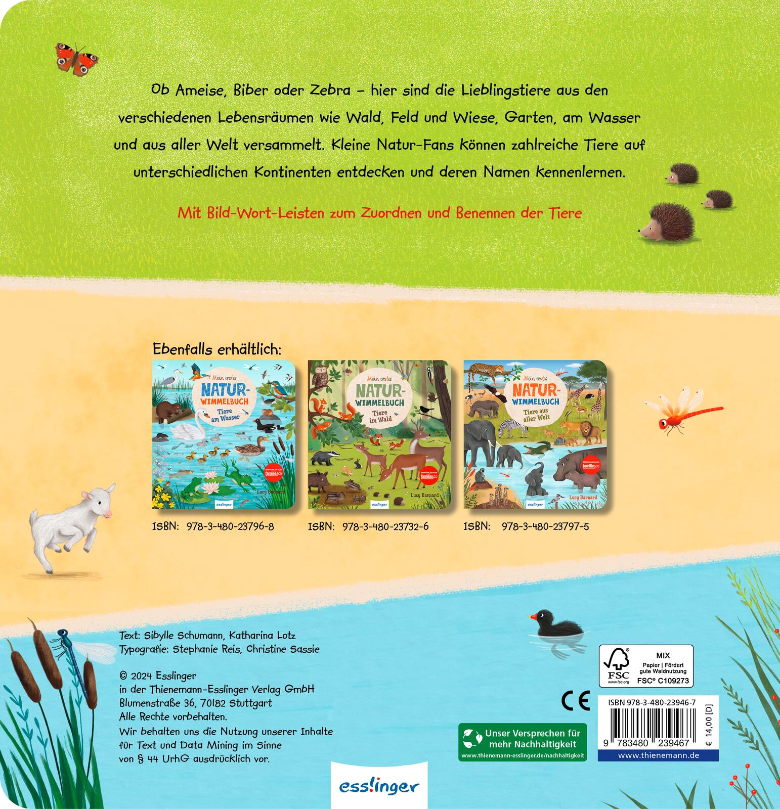 In diesem ersten Natur-Wimmelbuch entdecken Kinder ganz spielerisch die Natur und die Jahreszeiten: Ob Ameise, Biber oder Zebra - hier sind alle Lieblingstiere aus den verschiedenen Lebensräumen wie Wald, Feld und Wiese, Garten, am Wasser und aus aller Welt versammelt.