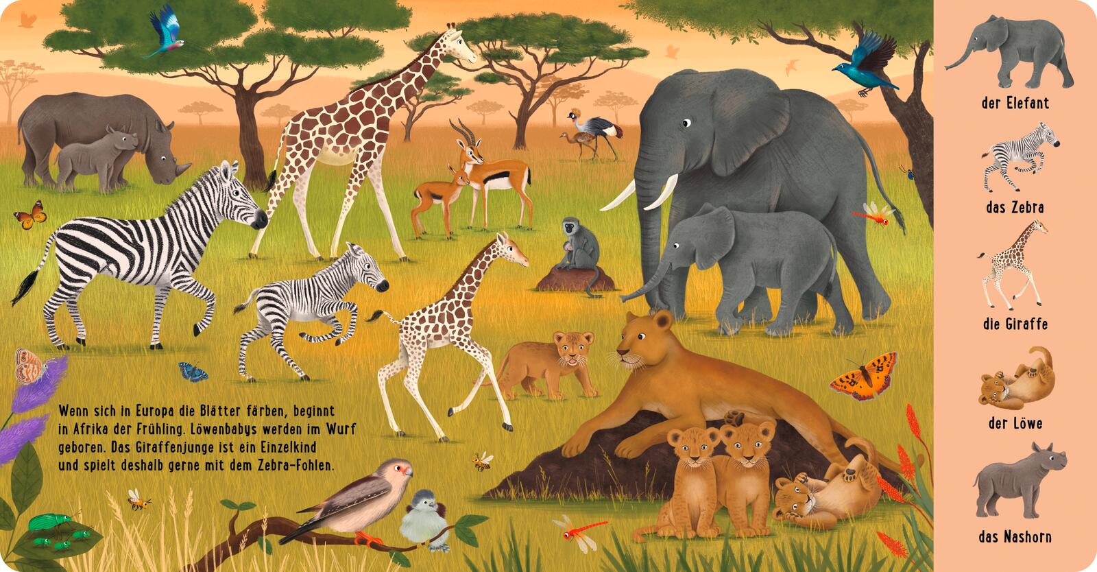 Die ganze Tierwelt in einem Buch - eine Entdeckungsreise von der heimischen Wiese bis in die weite Steppe Afrikas.