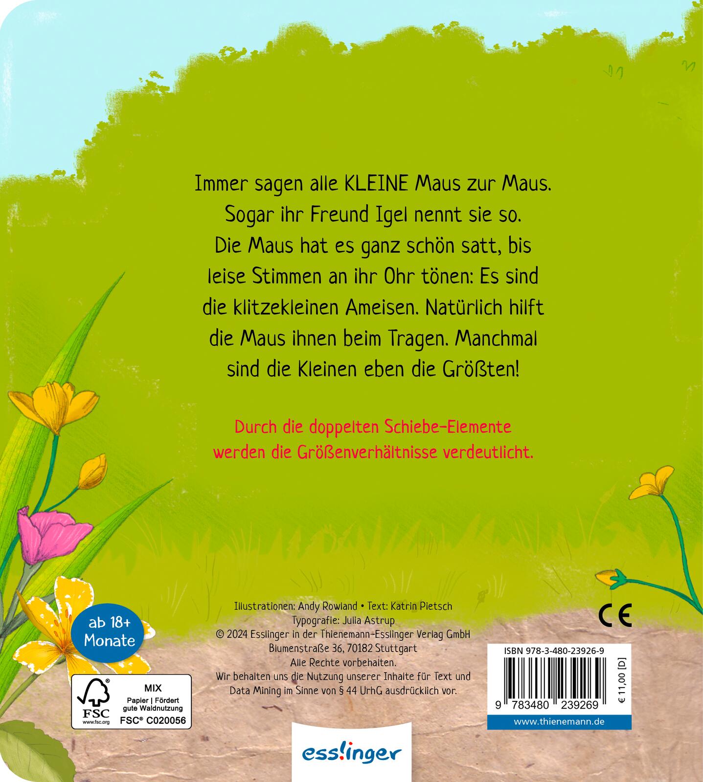 | Schlagworte | Ab 18 Monaten • Ab 1 Jahr • ab 2 Jahren • Bilderbuch schieben • Buch klein groß • Feinmotorik • Früherziehung • geschenk ab 1 • interaktives Bilderbuch • Kinderbuch • maus buch • Mitmachbuch • Pappebuch • Spielbuch |