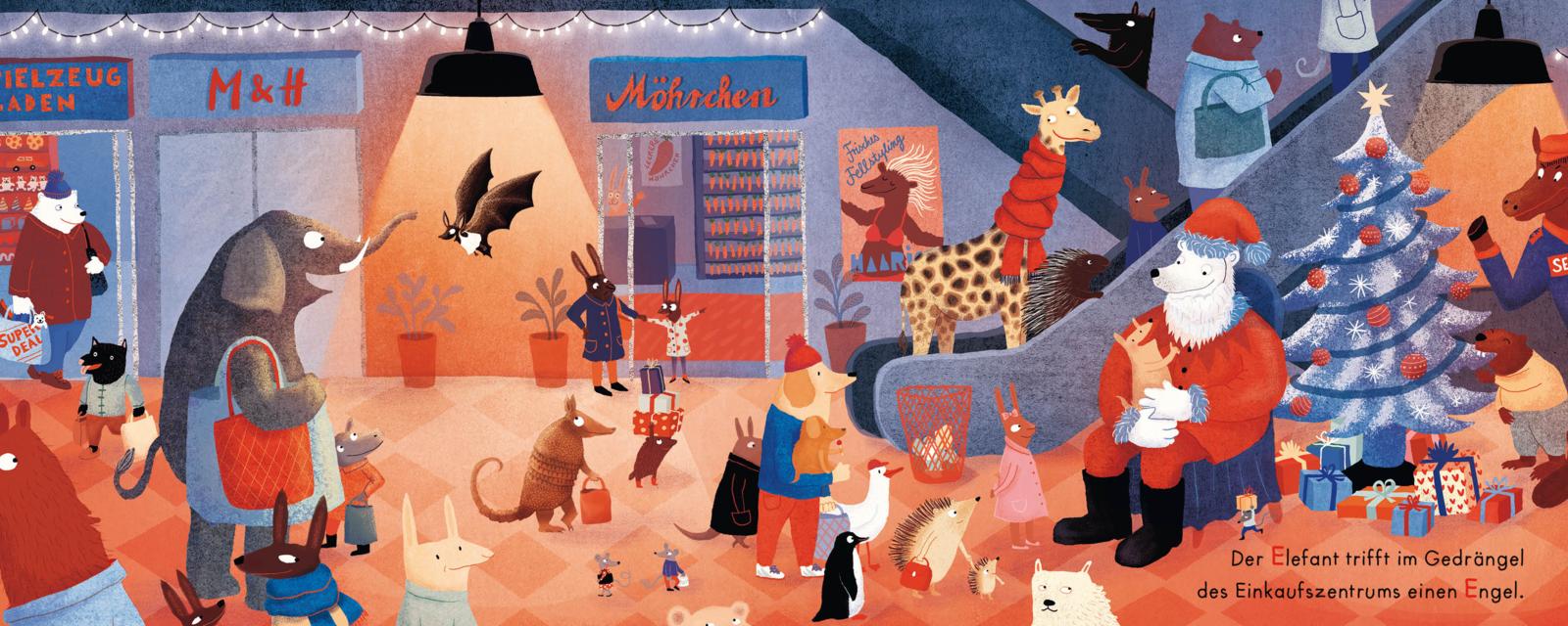 Adler, Biber und Cockerspaniel: In diesem Bilderbuch erleben alle Tiere die festliche Jahreszeit auf ihre ganz eigene Weise. Am Ende feiern sie alle gemeinsam, einmal quer durchs ganze Alphabet!