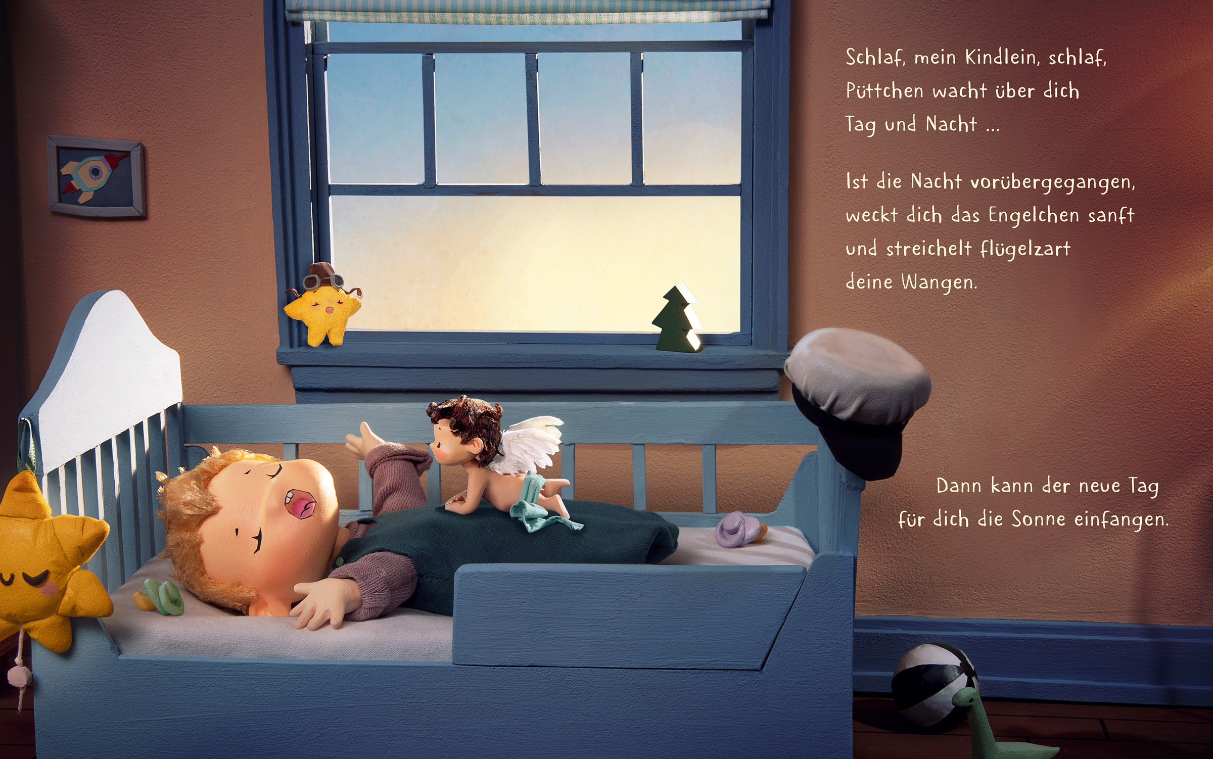 Püttchen, das Engelchen, flattert durchs Fenster herein, singt, kuschelt und beschützt die Kleinen, bis die Sonne aufgeht.