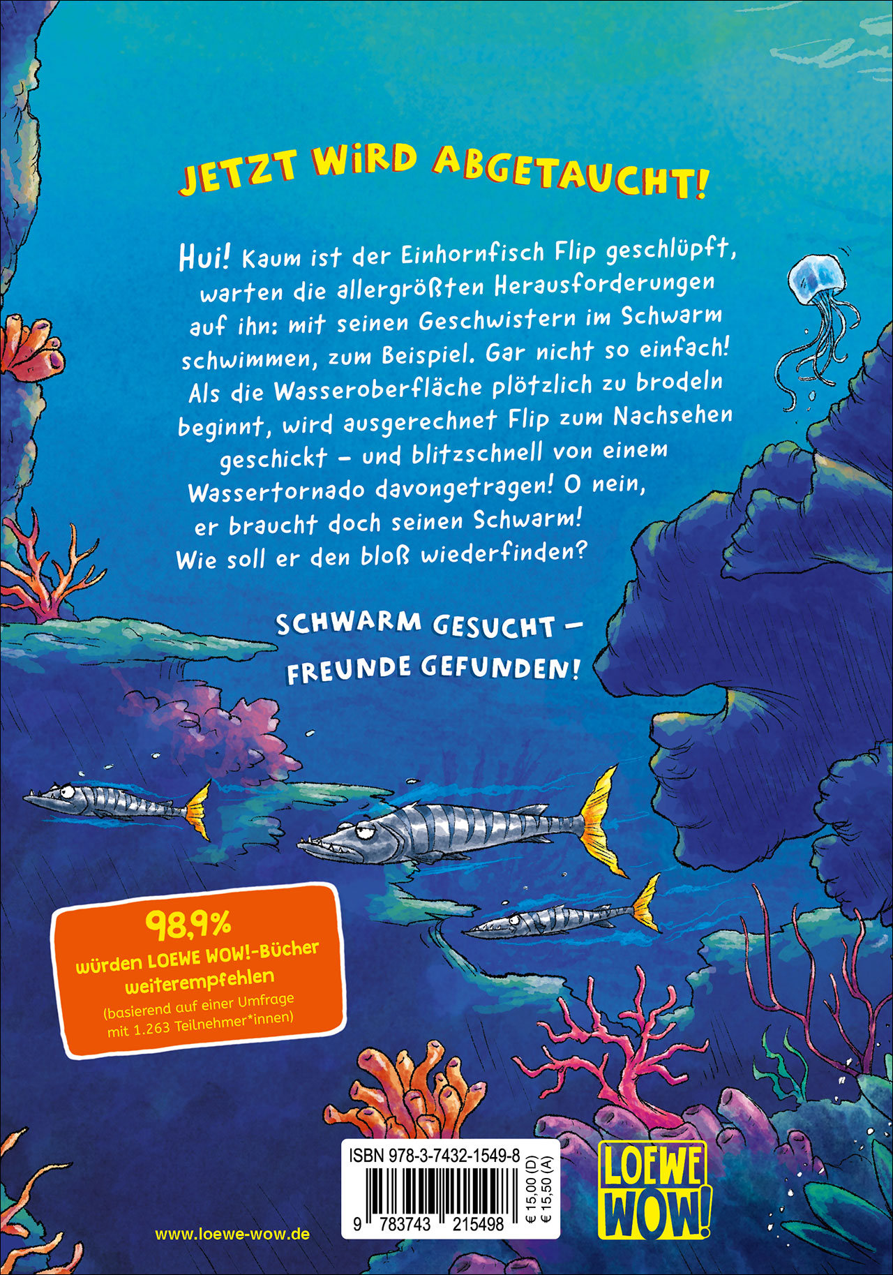 Loewe Wow! taucht in die Unterwasserwelt ab! Band 1 der neuen Reihe mit Flip, dem Einhornfisch: Prachtvoll schillernde Korallenriffe, abenteuerliche Schiffwrackwelten und eine herzerwärmende Freundschaftsgeschichte mit ganz unterschiedlichen Charakteren zum Identifizieren. Ein klitschnasser Lesespaß und leichter Leseeinstieg für Kinder ab 7 Jahren - zum Ein- und Abtauchen! Mit prachtvollen Illustrationen von Dominik Rupp, geschrieben von der Bestsellerautorin Julia Boehme.