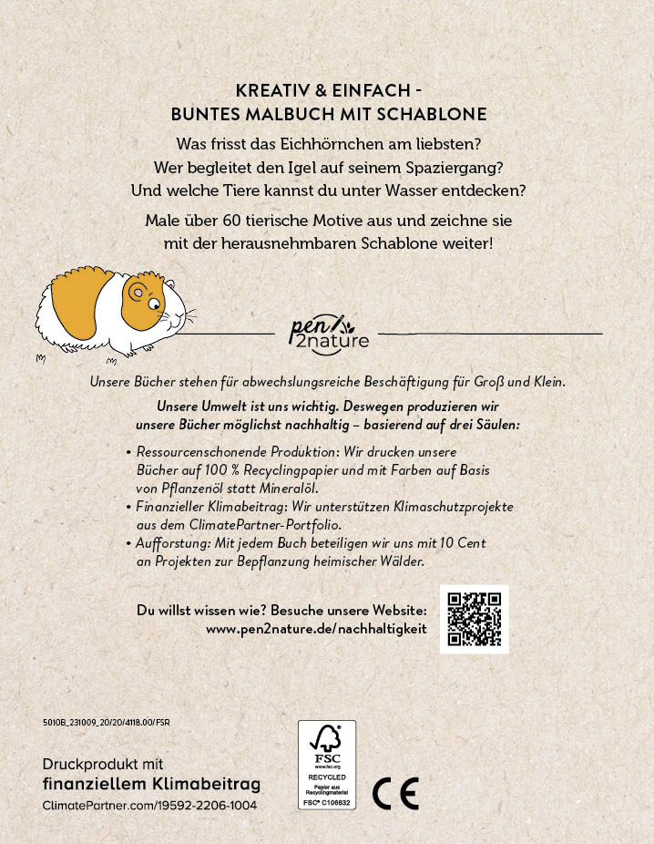 | Schlagworte | aus Recyclingpapier • Bastelbuch • Beschäftigung drinnen • Beschäftigung Kind allein • einzigartiges Malbuch • erstes Zeichnen • Für Kinder ab 5 Jahren • gegen Langeweile • Geschenk • Kinderbuch • Kleines Geschenk • Klimaneutrales Buch • klimapositiv • Kreative Beschäftigung • lange Beschäftigung • nachhaltiges Geschenk Buch • Nachzeichnen • ökologische Bücher • p2n • pen 2 nature • pen2nature • pen to nature • Schablonenbuch • Schablonenmalbuch • umweltbewusst • umweltfreundliche Bücher • Umweltverlag • unter 10 Euro • Unterwegs • Urlaub • Zero Waste |