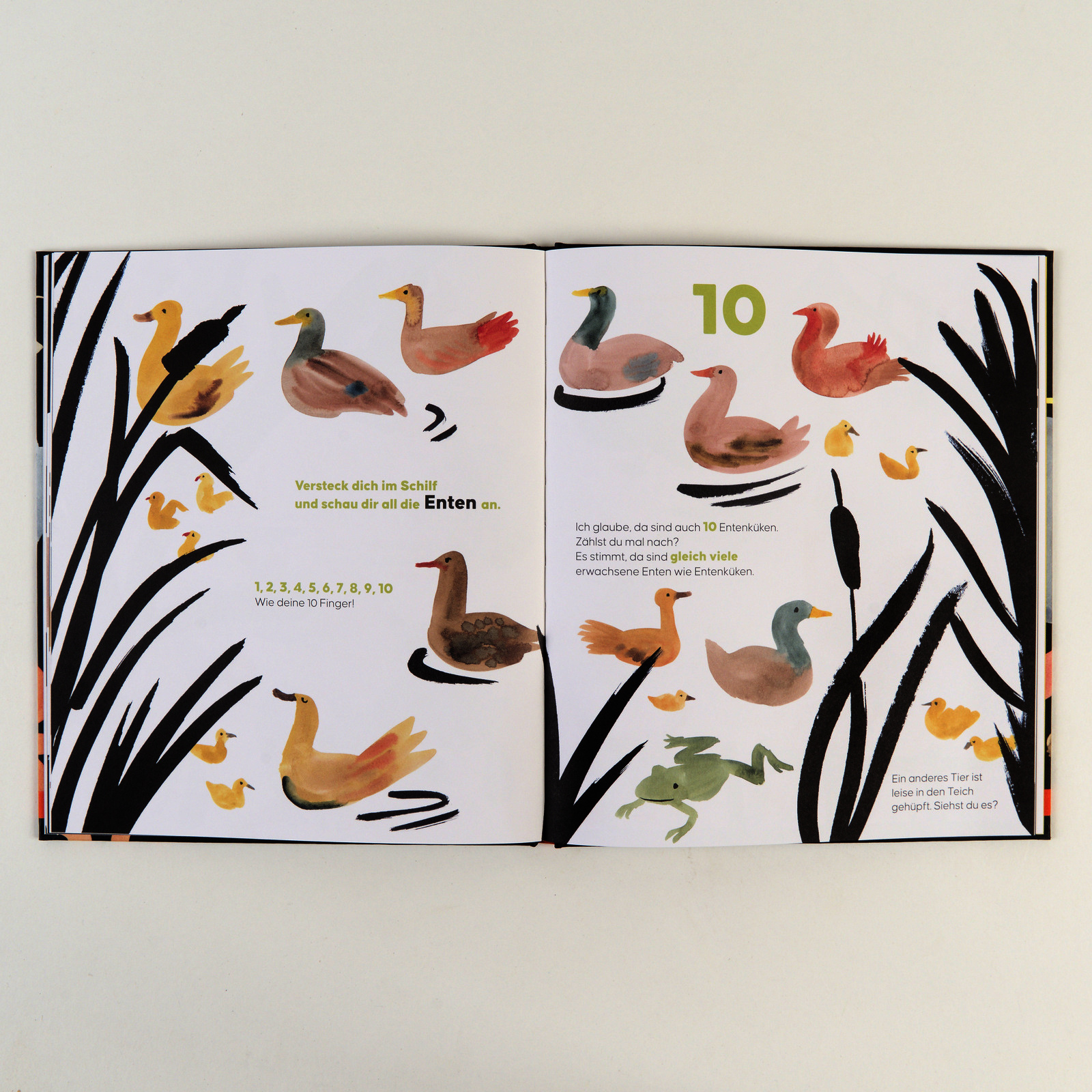 »Mit großzügigem Strich zum Leben erweckte Tierfiguren tummeln sich auf den hellen Buchseiten und animieren zum Zählen, Suchen, Entdecken und Geschichten erfinden. So einfach, so schön!« Stiftung Lesen