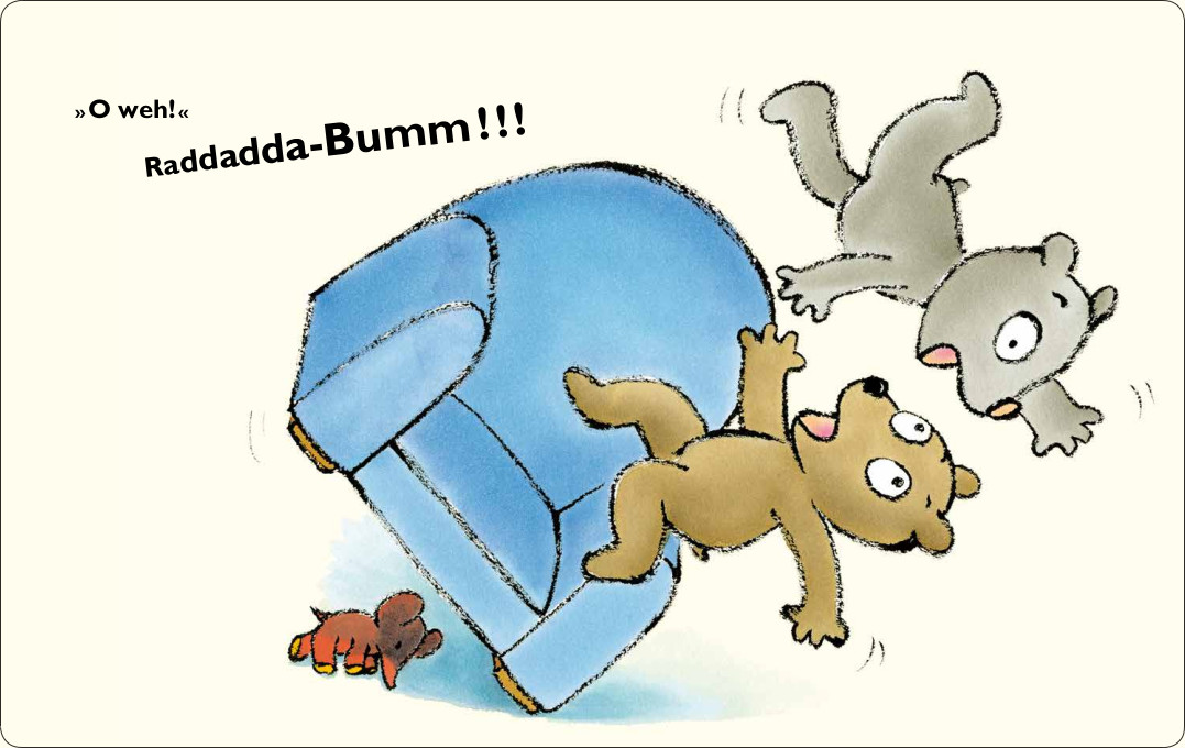 Das erlebt auch Momo. Zum Glück ist seine Freundin Lola da und tröstet ihn mit einem großen Kuss und einer derart festen Umarmung, dass der Sessel umkippt! Dabei kommt zum Vorschein, was der Grund für all die Tränen war: Sein Schmuselfant! Jetzt ist alles wieder gut. Ein Pappbilderbuch, das Kinder auf emotionaler Ebene sofort anspricht, gehören Kuscheltierverluste doch zum Alltag eines jeden Kindes.