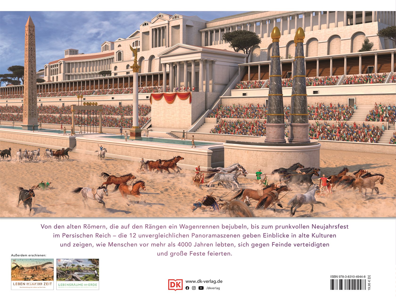 - 12 detailreiche Szenen nehmen Kinder mit in den Alltag ägyptischer Pyramidenbauer, zum Neujahrsfest in Persepolis oder zum Wagenrennen im alten Rom