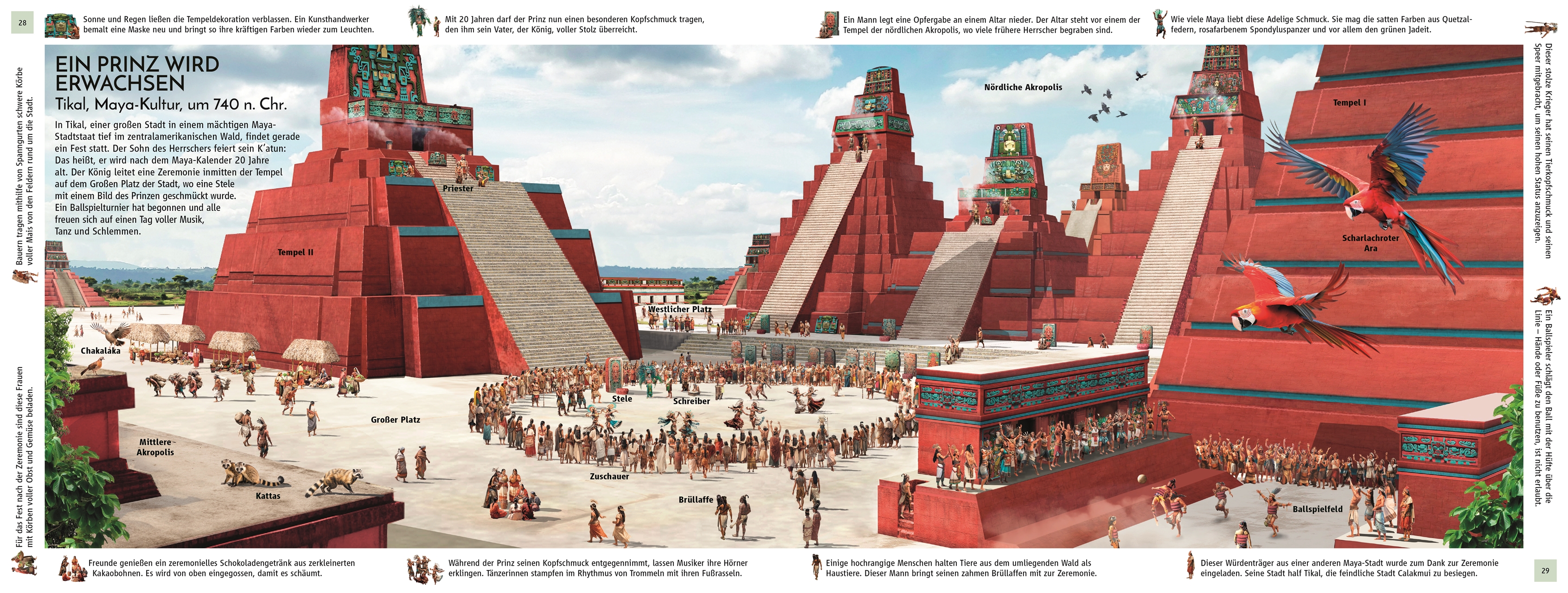 Was machten die alten Römer eigentlich in ihrer Freizeit? Wer trieb sich im alten Griechenland auf den Märkten herum? Und wie sah ein chinesischer Grenzposten aus? Dieses Buch entführt Geschichtsfans ab 7 Jahren an 12 überwältigende Schauplätze der bedeutendsten antiken Zivilisationen. Von den Sumerern, der frühesten Hochkultur der Welt, bis zur Blütezeit der Maya, erstreckt sich diese Reise über alle Kontinente und zeigt die Entwicklungen in Bereichen wie Städtebau, Kunst und Architektur, Religion, Kriegsführung oder Handel. Eindrucksvolle Grafiken im Wimmelbildstil machen das Altertum hautnah erlebbar- und die Vielfalt und Besonderheit der alten Griechen, Römer, Maya, Polynesier und anderer Hochkulturen greifbar.